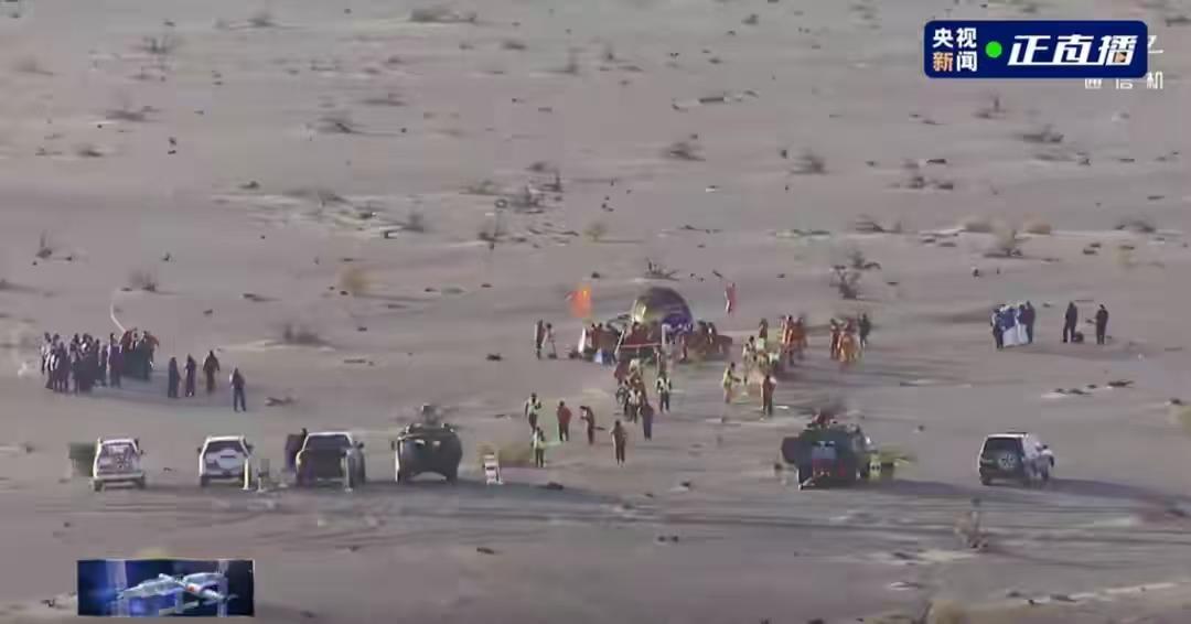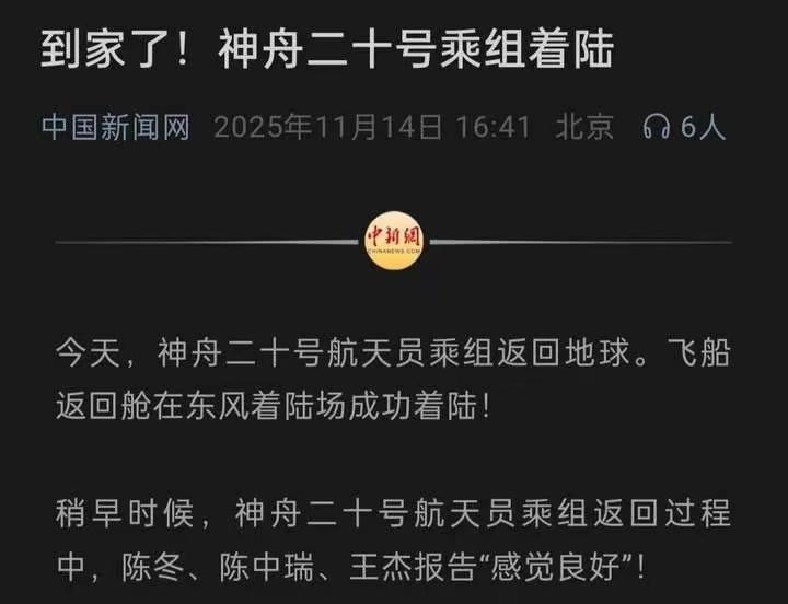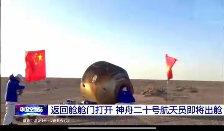 歸航箭,聲破月;着陸傘,光映雪。看英雄含笑,平安還闕。舉國歡騰傳捷報,九州振奮書宏業。待明朝、再馭木蘭舟,沖霄闕。