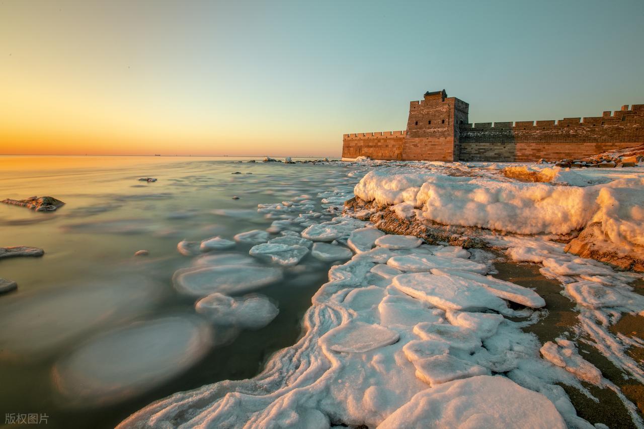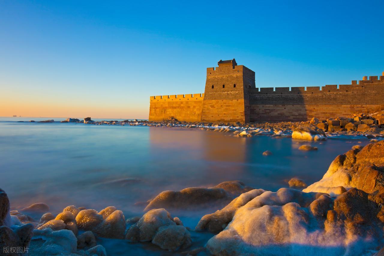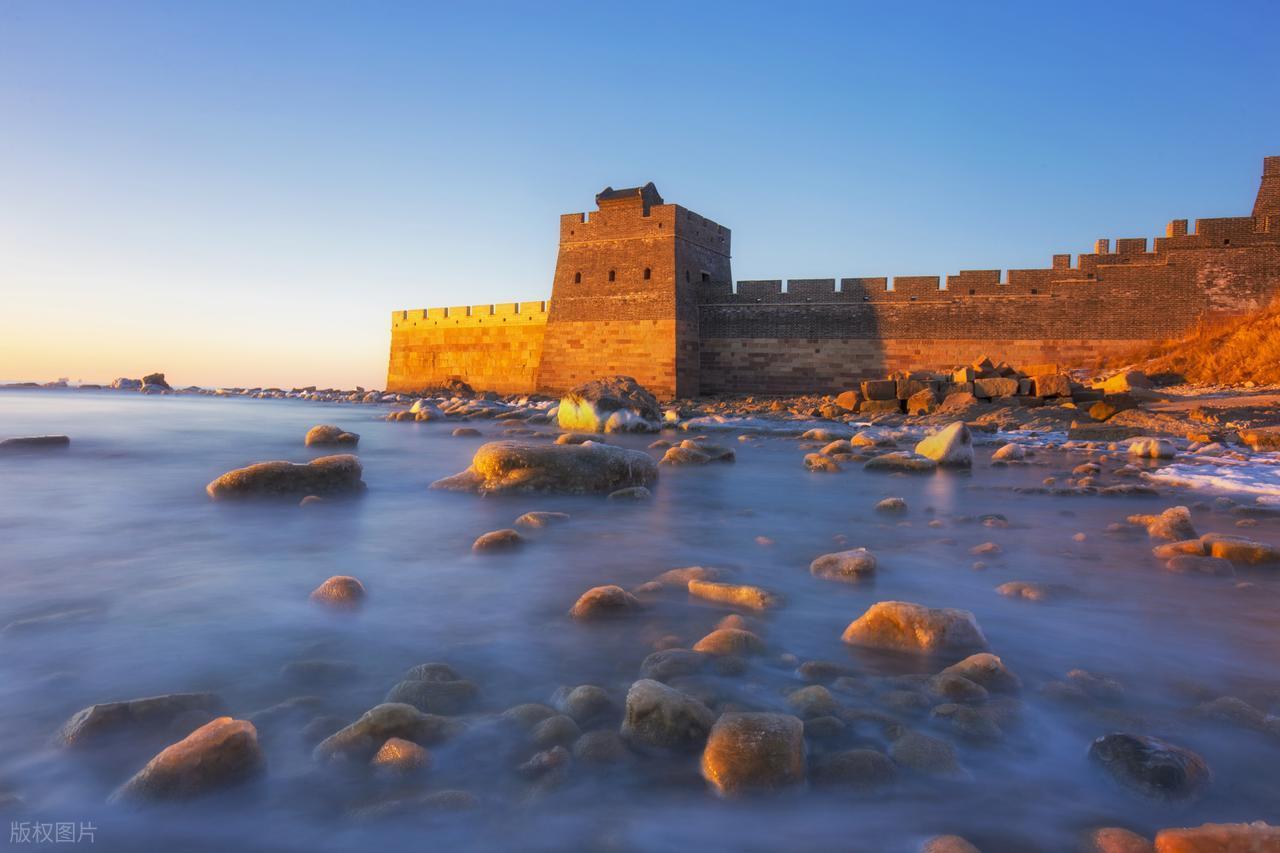 最妙的是看長城入海的模樣。老龍頭那段城牆,不像別處那般巍峨,卻帶着一股子韌勁,順着海灘的坡度延伸,最後一頭扎進渤海里,牆基的條石在海浪中若隱若現,像是巨龍飲水的爪子。漲潮時,海水拍打着城牆,濺起的浪花沾在磚上,帶着鹹澀的氣息;退潮後,灘塗上露出的碎石,還留着城牆的印記。早年的戍卒,就是在這兒守着“水關”,既要防陸上的敵寇,也要警惕海上的侵擾,日復一日,把青春融進了這山海之間。