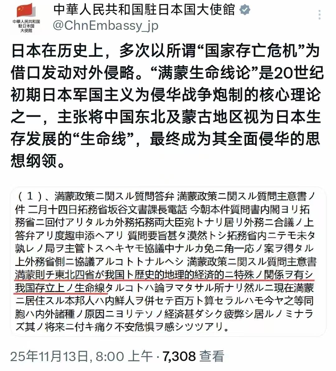 面對高市早苗政府的挑釁,中方的立場清晰而堅定:臺灣問題是中國核心利益中的核心,是不可觸碰的紅線,任何外部干涉勢力都無法阻擋中國統一的歷史進程。中方已通過嚴正交涉、強烈抗議等方式表明立場,展現了捍衛國家主權的決心與底氣。