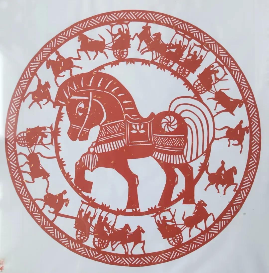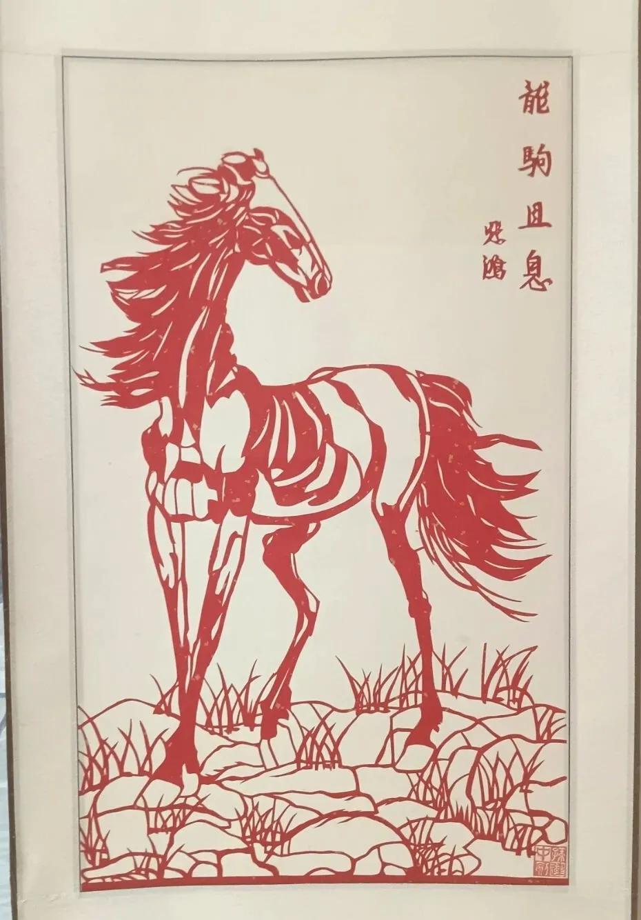 江蘇宜興市孫建中老師創作的駿馬剪紙,把草原奔馬的豪情、文人畫馬的意境,都揉進了紅紙裏。