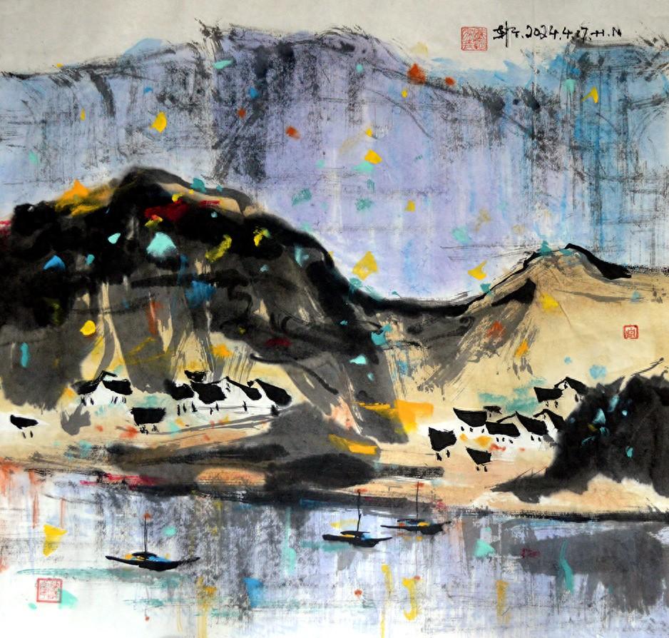 山川河流像似歲月流逝從腦海中掠過,印象概念似乎又模糊不清,從而添加此時此刻的心情更顯得彷徨遲疑甚至飄忽不定之中,也可能是茫然不知所措吧。彷彿是繪畫創作的激情突然消失了,怎麼找也找不回來,腦子處在一片混沌狀態,想用筆墨在潔白的宣紙上描繪出清晰明確的感覺,哪怕具體或是按部就班都可以,只要能畫下去,其結果可能會和平時不一樣吧,就像肚子餓了和不餓時到飯點了喫飯的感覺味道都是會不一樣的。