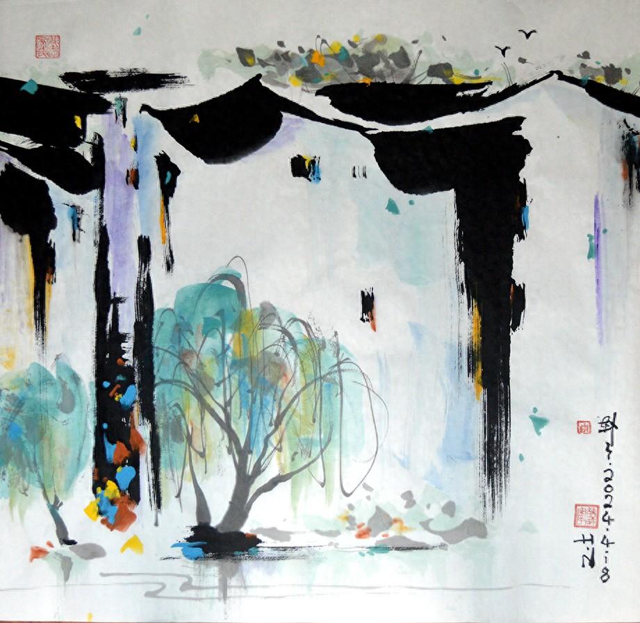 筆墨馳騁穿插在似與不似之間,似乎是筆隨心所欲的涓涓流淌而成型、成畫、成就了一種氛圍,一個心想事成的行爲藝術表現的結果。說藝術深奧不深奧,說簡單不簡單,完全在於我們的心胸、格局、情感與思想境界,嘴上說的再好,頭銜再高,一走筆就能看得出來你是騾還是馬,藝術這玩意是靠感覺說話的,而理解只是認識的過程而已。沒有比較就沒有傷害,一個人在某個地方唱獨角戲,鼓譟起來,雲山霧罩的,以爲水簾洞裏的猴子,佔山爲王,殊不知山外有山、天外有天,自己只不過是一隻井底的蛤蟆而已。