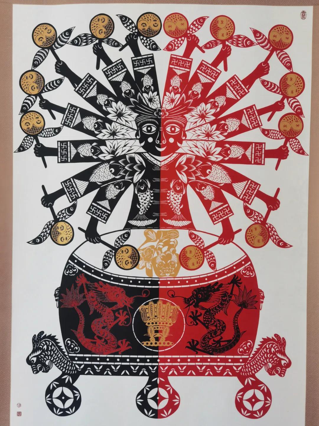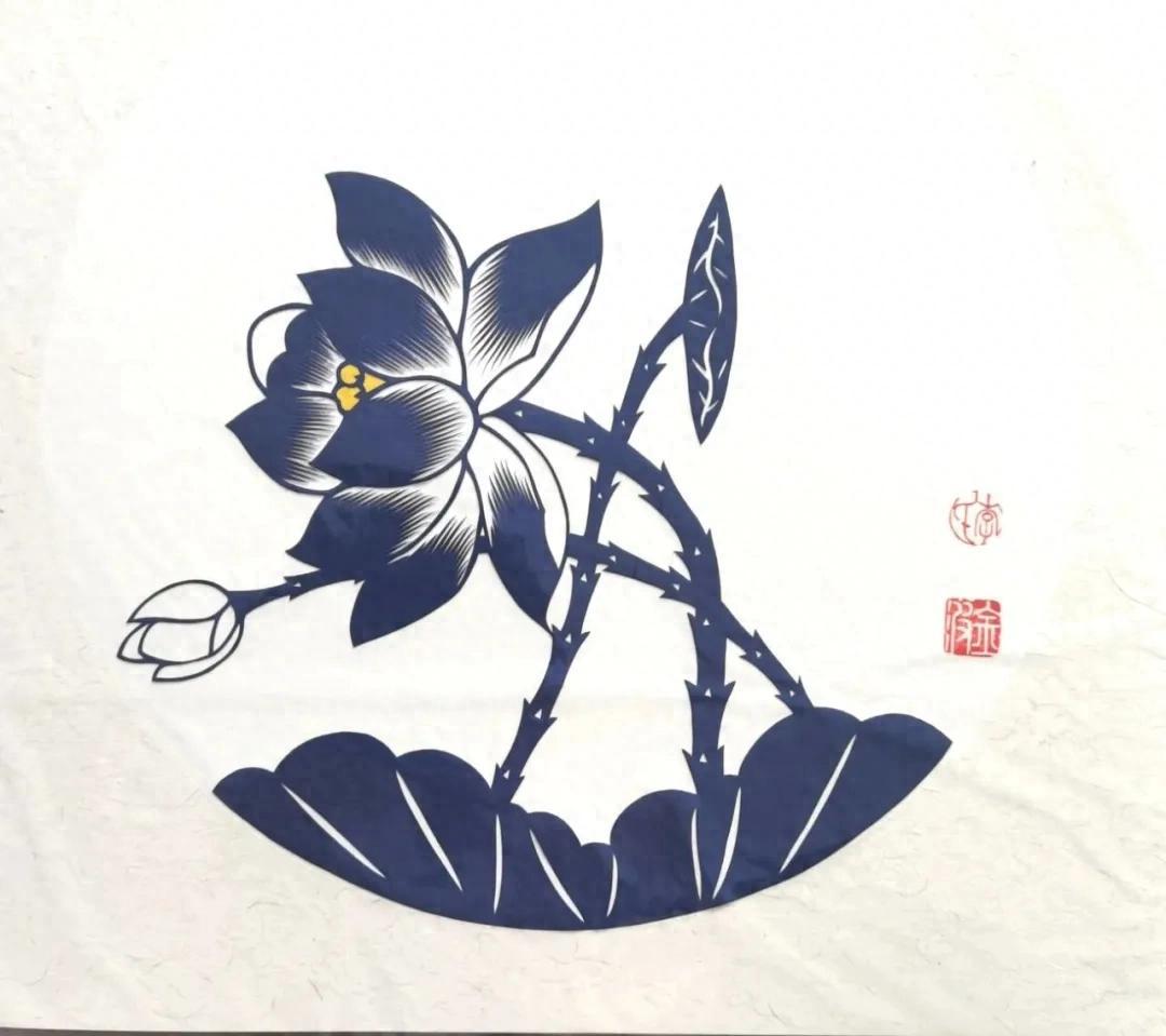 他深研黑、白、灰的層次處理,讓作品既有剪紙的鏤空通透,又有類似繪畫的筆墨韻律。比如他的蓮花剪紙,既有北方剪紙的大氣構圖,又有細膩的花瓣紋理;牛剪紙則在憨實的造型裏,藏着對耕牛肌理的精巧刻畫,粗獷與精巧在一紙之間達成奇妙平衡。