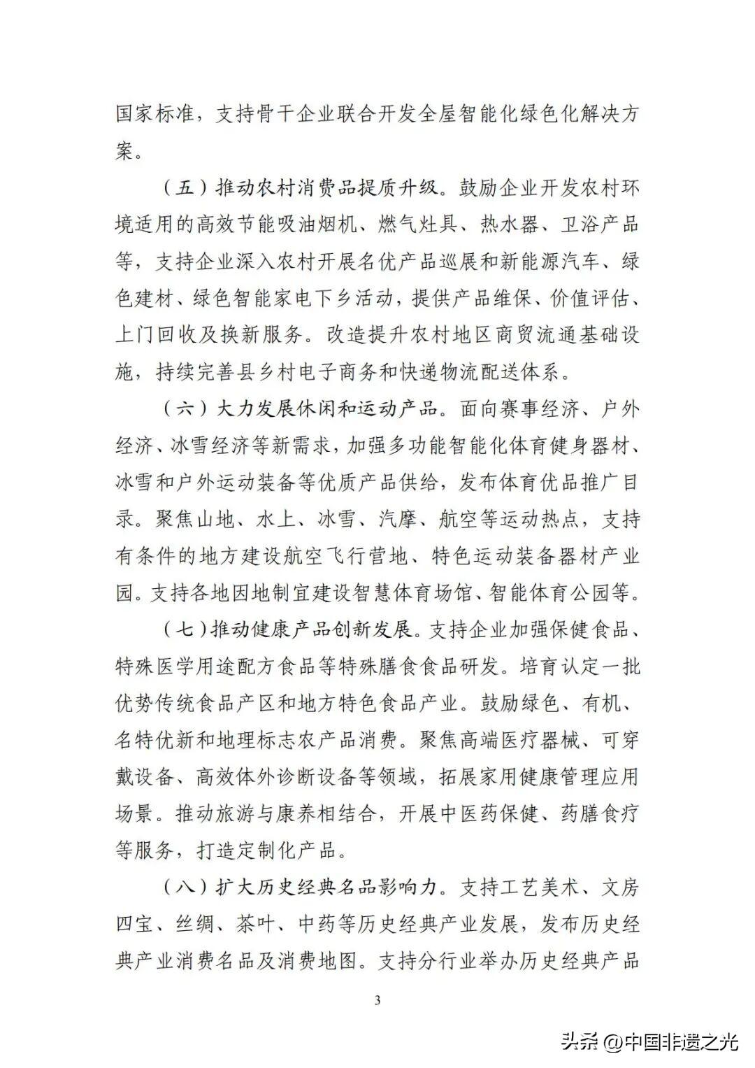 二是推動文旅消費場景煥新。制定非遺工坊建設操作指南,引導非遺工坊提質增效,推出一批優質非遺相關產品和服務。持續舉辦“非遺好物 國潮煥新”四季非遺購物月等活動,發佈非遺好物,打造非遺市集,推動非遺進景區、進街區,鼓勵非遺產品進入商超、免稅店銷售,釋放非遺消費潛力。舉辦中國時尚產業盛典,持續打造時尚文化活動品牌,推動將優秀創意和中華優秀傳統文化融入時尚設計,培育時尚消費市場。指導自駕車旅居車營地提質增效,提高運營和服務水平,推動自駕車旅居車旅遊和露營旅遊健康發展。引導各地進一步豐富城市漫步、鄉村旅居、露營休閒等融合消費場景。組織開展文旅新業態新場景對接行動,積極打造沉浸式體驗、線上演播、數字藝術、電競娛樂等文旅數智化新模式。
