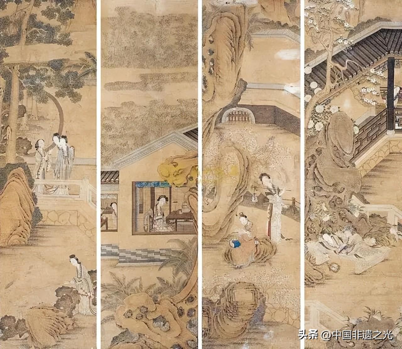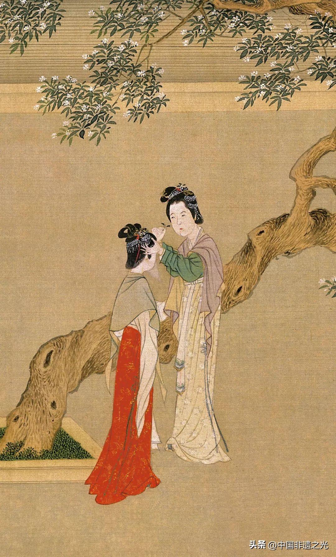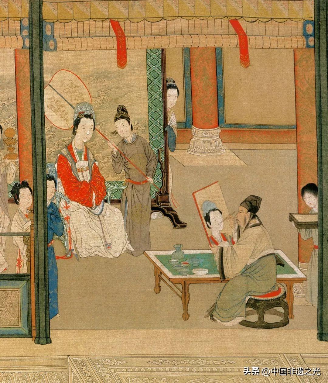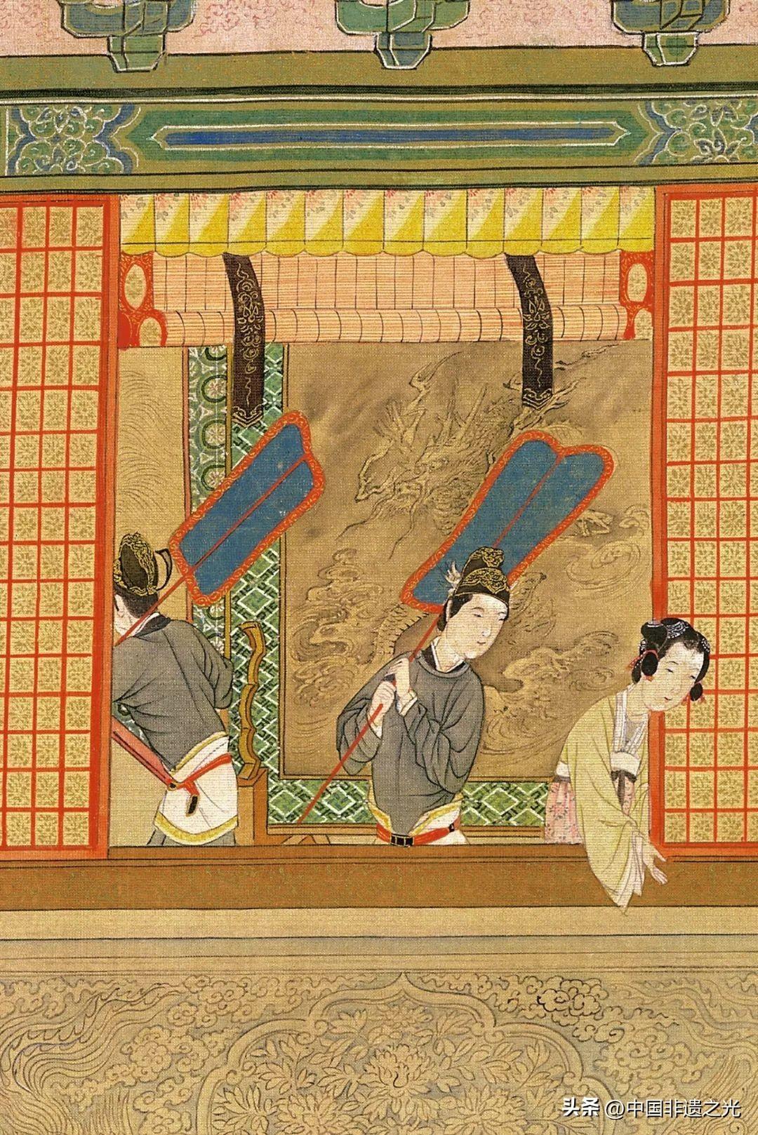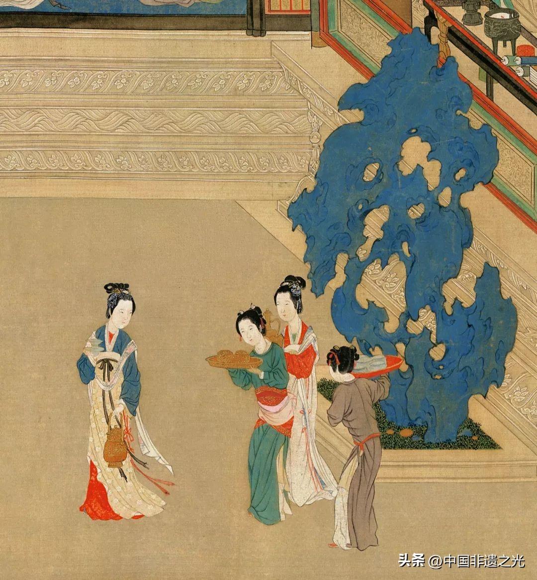 在中國古代美術史人物畫這一分科中,甫一開始,人物畫就是承載着“成教化,助人倫”的使命,因而,歷史故事題材是佔據最重要的地位之一。仇英也不例外。這一方面,他在項元汴贊助下對其藏品臨摹較多。另一種是仇英根據自己的理解對一些歷史故事和傳說的演繹,在風格和技法上以南宋爲圭臬,多是取一景的小品,畫面有趣味性。最後一種就是人物場景圖了,此中代表即爲《漢宮春曉圖》。