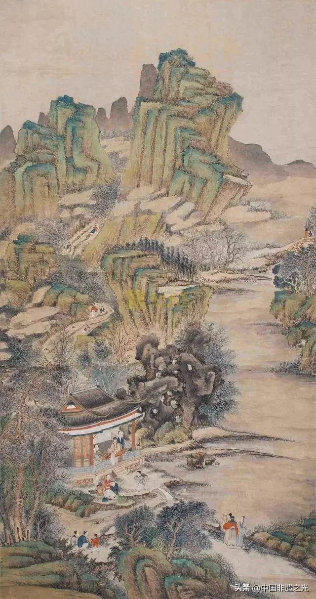 人物畫發展到明代這裏,就開始“退隱”到山林之中了,於是,“文人雅集”題材開始出現。仇英對此題材自然也是熟稔,也寄託了他對這種上層階級交遊方式的嚮往之情。真正體現仇英令人讚歎的集大成功力之作是見藏於上海博物館的《劍閣圖》,這幅縱長295.4釐米、寬101.9釐米的長卷,是仇英自創的母題,其靈感來自李白的《蜀道難》。