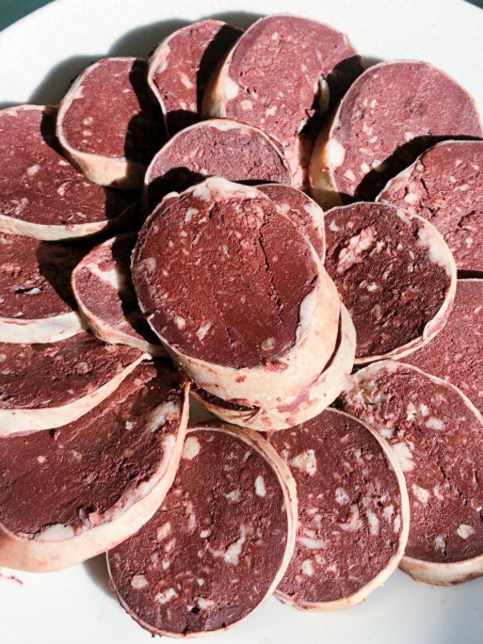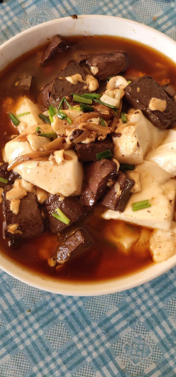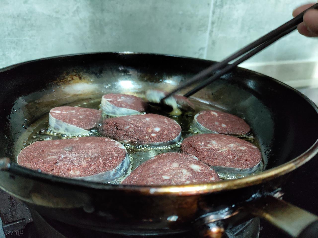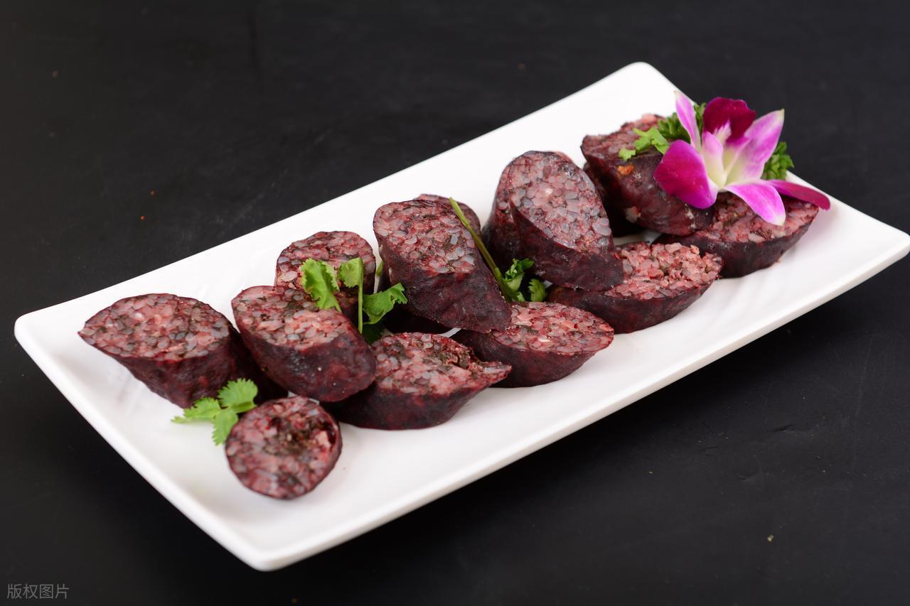 待到出鍋,晾得微溫,切片擺盤,便是另一番光景了。腸衣此時已變得柔韌而微彈,裏頭的血呢,早已凝固,卻絕非呆板的硬塊。那是極細膩的,帶着無數看不見的微孔,吸飽了湯汁的凝脂。切開來,斷面是美麗的:外圈一層薄而韌的皮,裏頭是深褐色、近乎墨玉的實質,其間均勻地鑲嵌着點點翠綠與淡黃。用筷子夾起一片,顫巍巍的,蘸一點蒜泥醬油,送入口中。