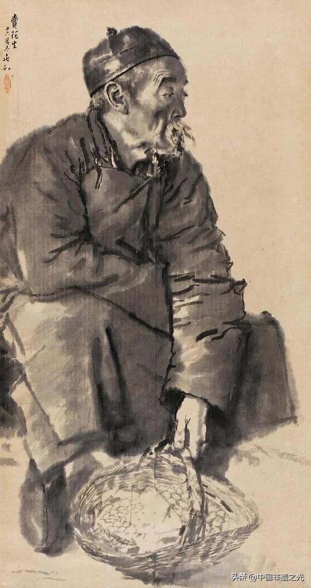 除了技法上的嫺熟與入木三分的刻畫,蔣兆和的畫筆下流露的是對廣大勞動人民的憐憫,他常常以裁縫、車伕、盲人、流浪的小子等那種市井人物爲題材創作。
