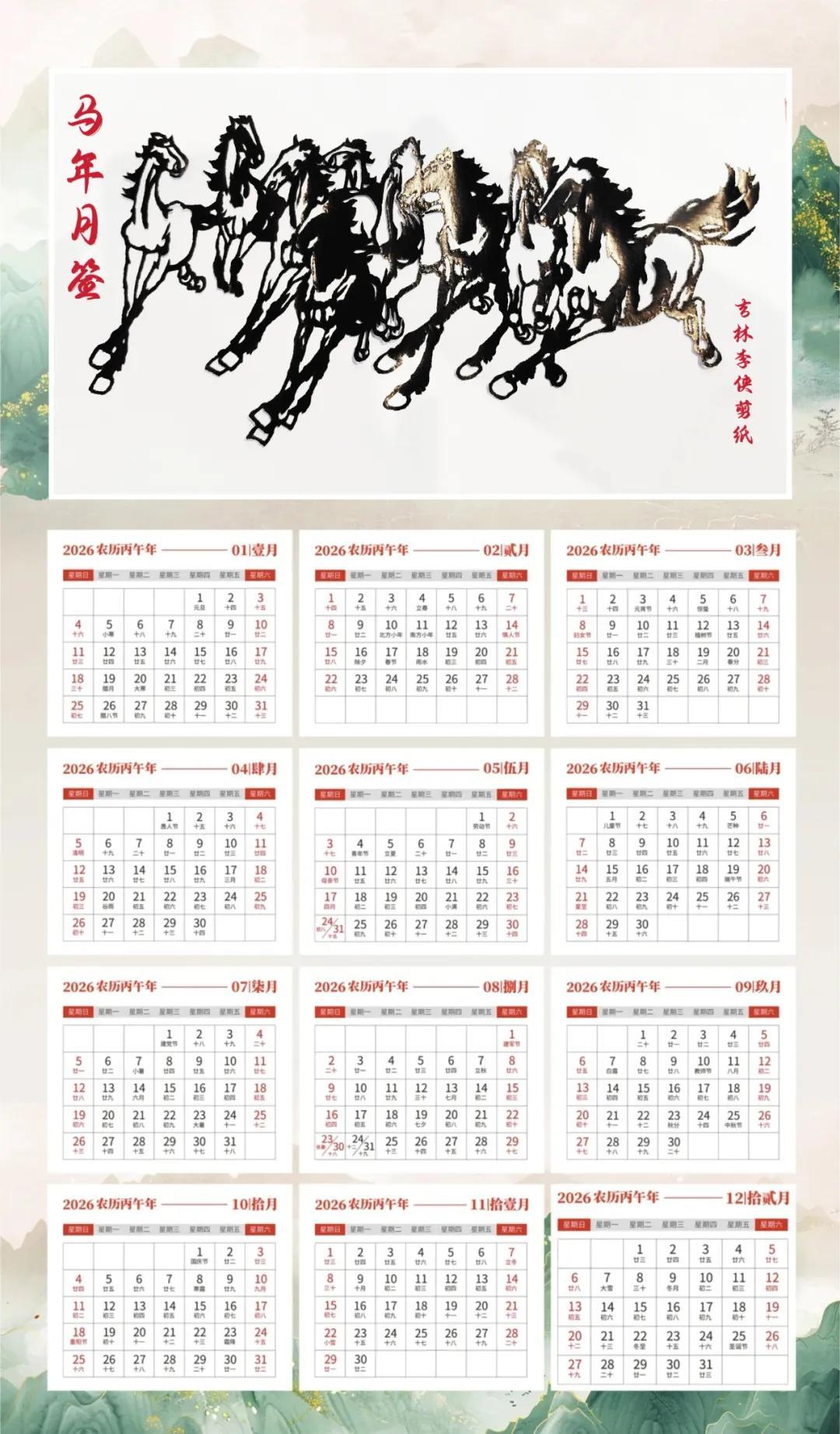 十二幅原創剪紙藏滿巧思,以烏拉黃氏滿族民俗剪紙樸拙古樸技藝,勾勒出東北烈馬神韻,既有“馬到成功”的奮進祝福,也有“馬上有福”的溫潤祈願,讓非遺剪紙伴着滿滿好運,陪你走過2026每一月。