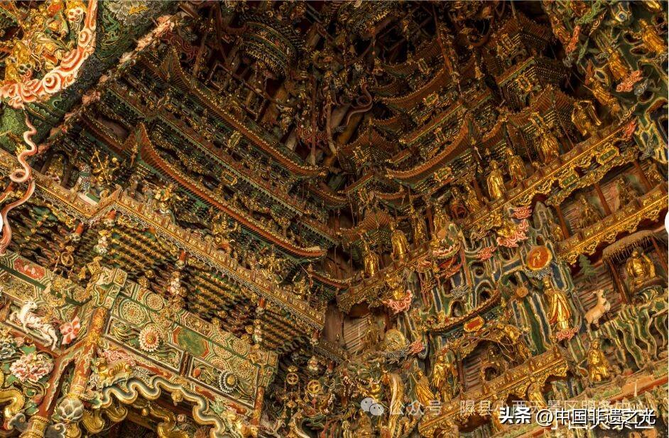 這座始建於明萬曆十年的古寺,大雄寶殿內藏着上千尊懸塑珍品:匠人將黃土揉得軟硬適中,精準把控塑形力度,捏出文殊、普賢、觀音等造像的靈動姿態,再輔以童子、力士、飛天環繞其間。更絕的是,這些懸塑採用“連環塑”手法,將不同造像連成一體,高低錯落、繁而不亂,構成一個沉浸式的立體佛國世界。也正是這份巧奪天工的技藝,讓長治觀音堂的懸塑成爲“出圈敲門磚”,讓全國網友看到了山西彩塑的深厚底蘊。
