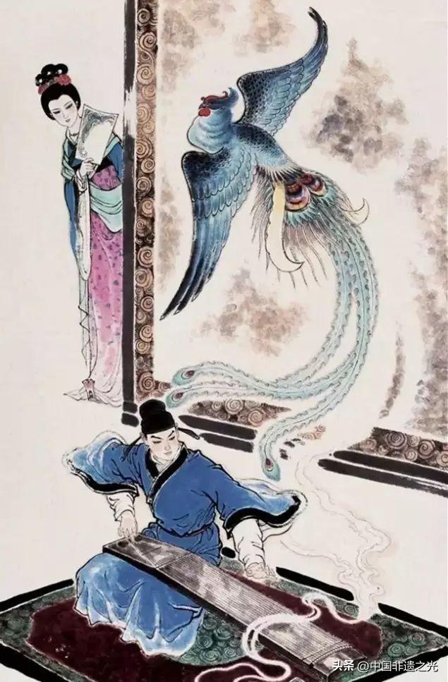 司馬相如,是被奉爲上賓的才子;卓文君,是孀居在家的佳人。司馬相如作客卓家,彈唱了一首著名的《鳳求凰》:“鳳兮鳳兮歸故鄉,遊遨四海求其凰。”在簾後傾聽的卓文君怦然心動,一見傾心,於是兩人一起私奔了。