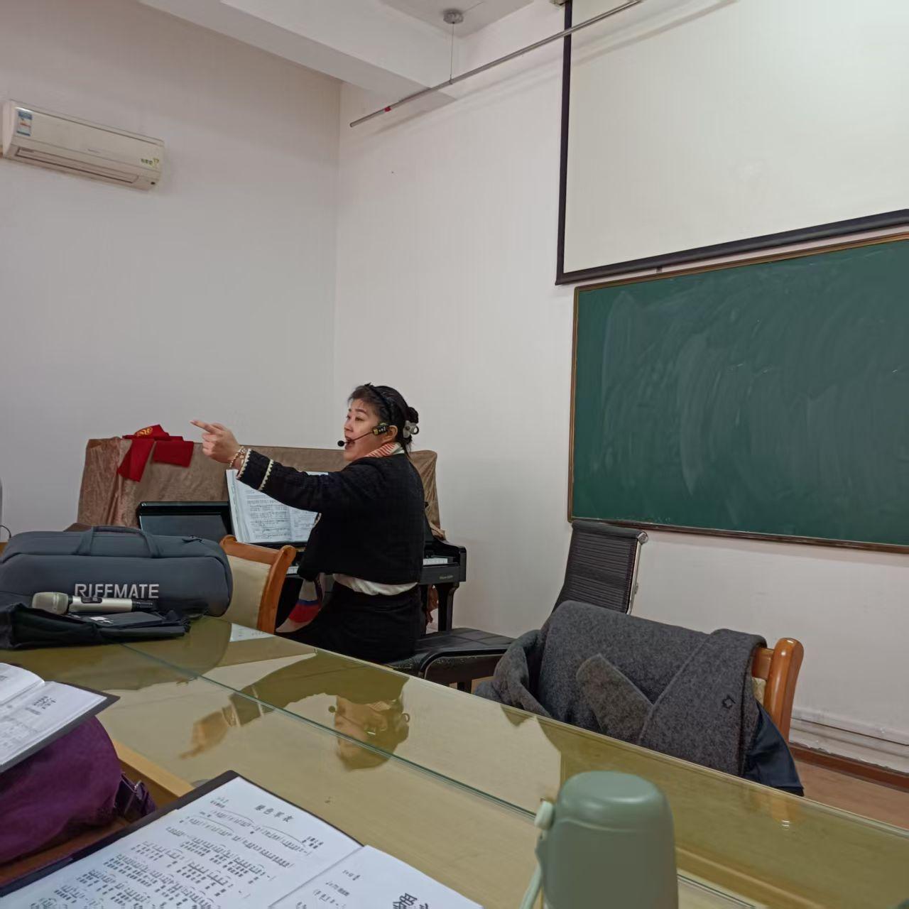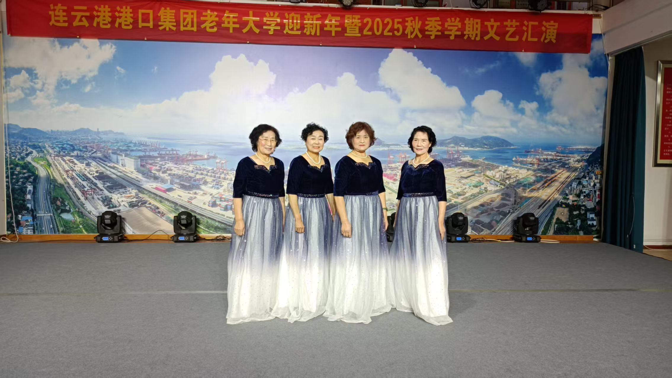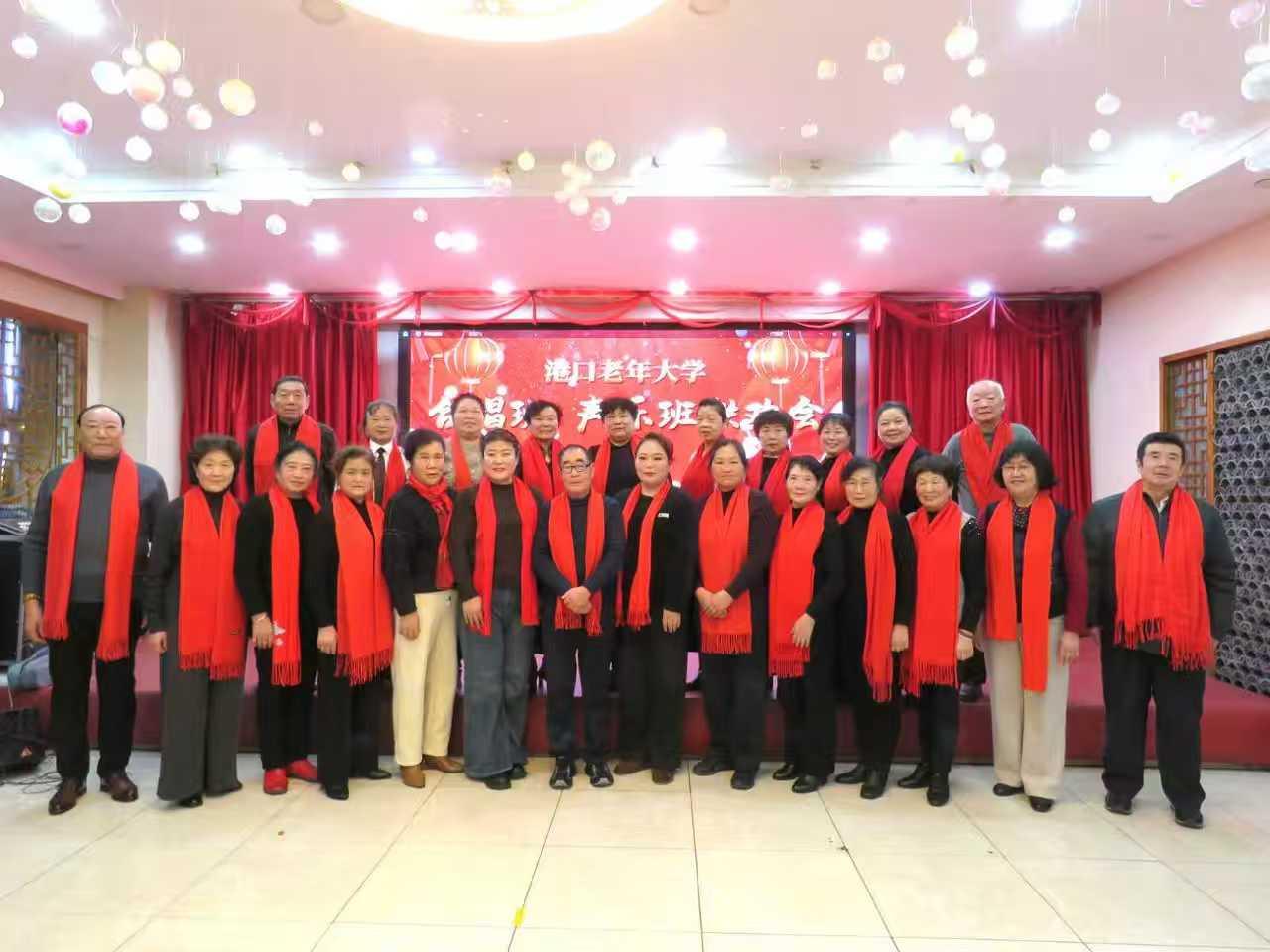 大港連雲,秋光正好,雅韻飛揚。聚五十翁媼,情牽家國;一堂弦管,意滿滄桑。尊師授藝,精研樂理,識譜開喉意氣昂。歌千曲,頌山河錦繡,港城輝煌。