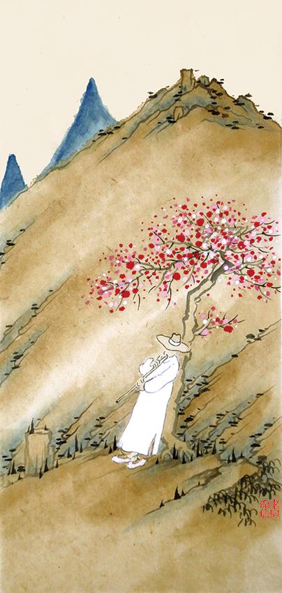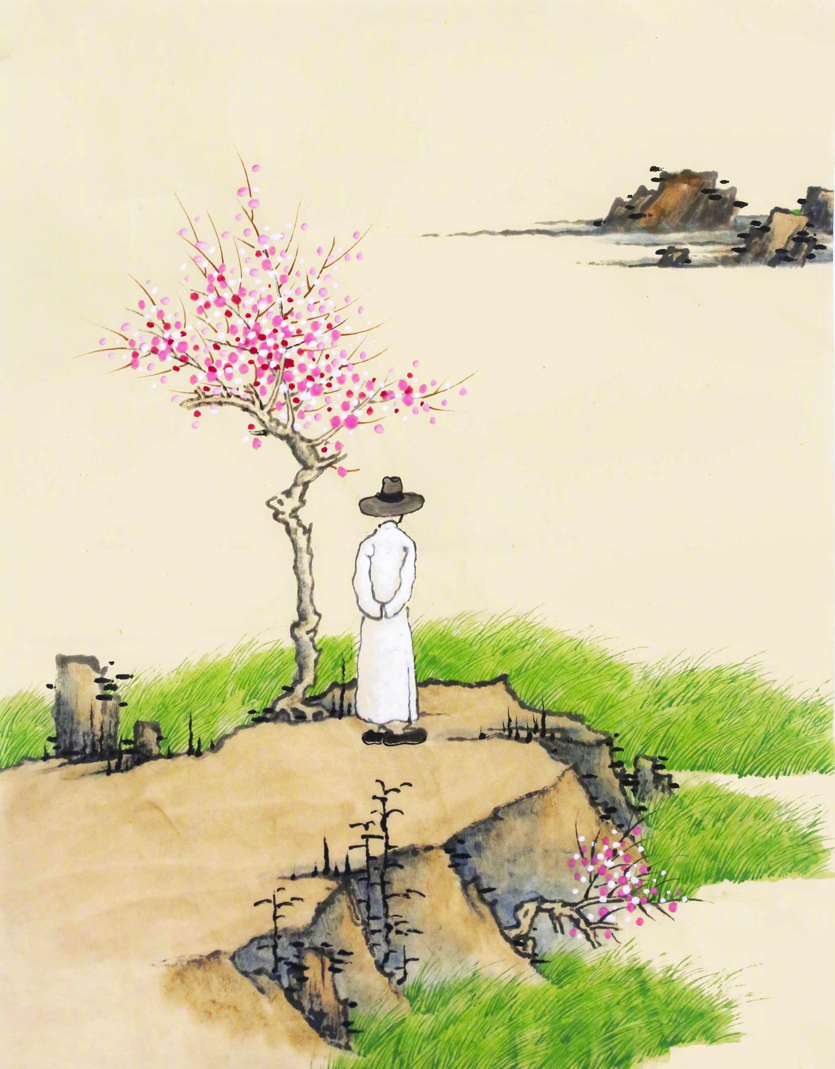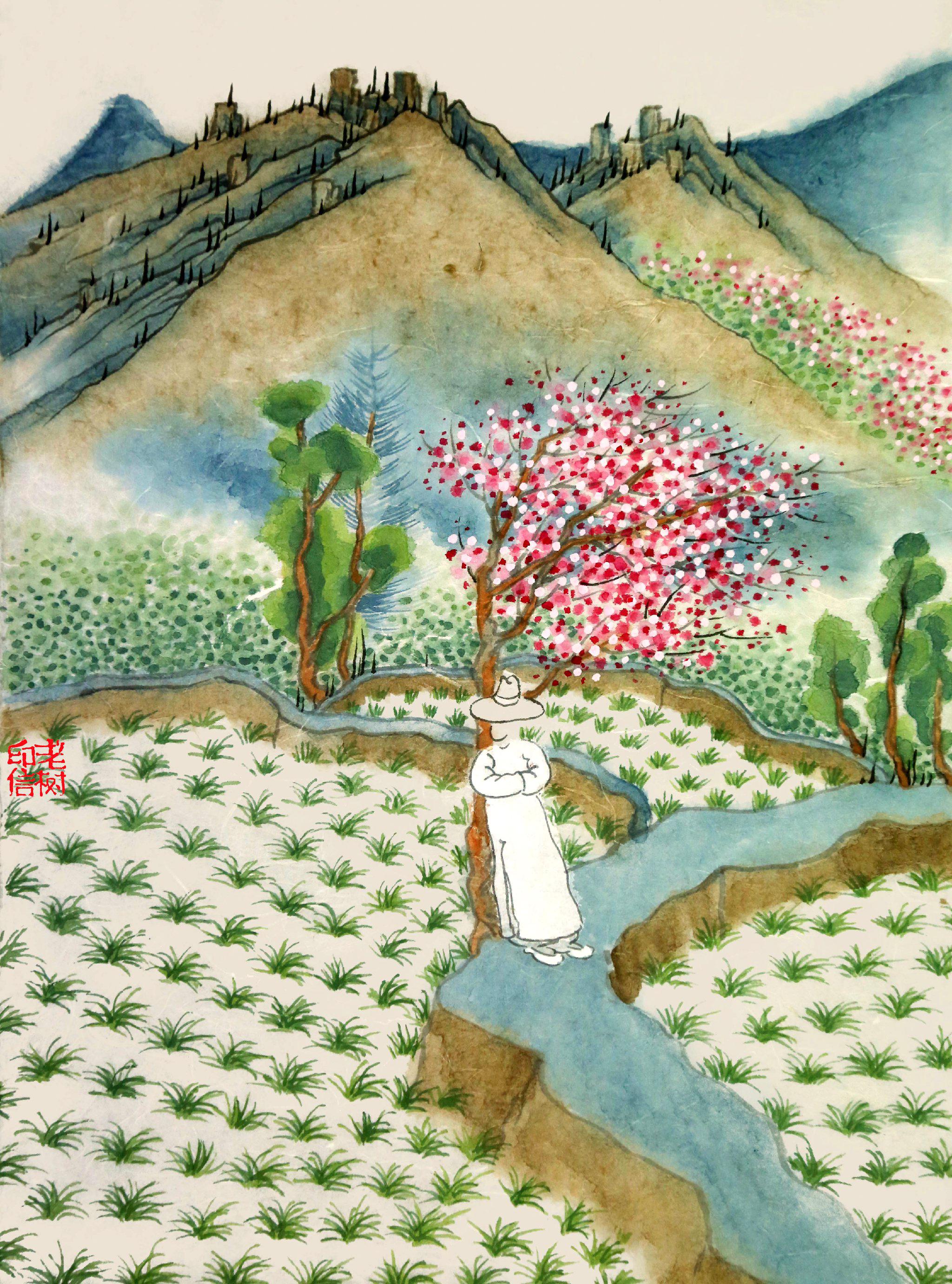 老樹:春來門前綠,花開滿枝頭。功名何足道,唯羨魚兒遊。