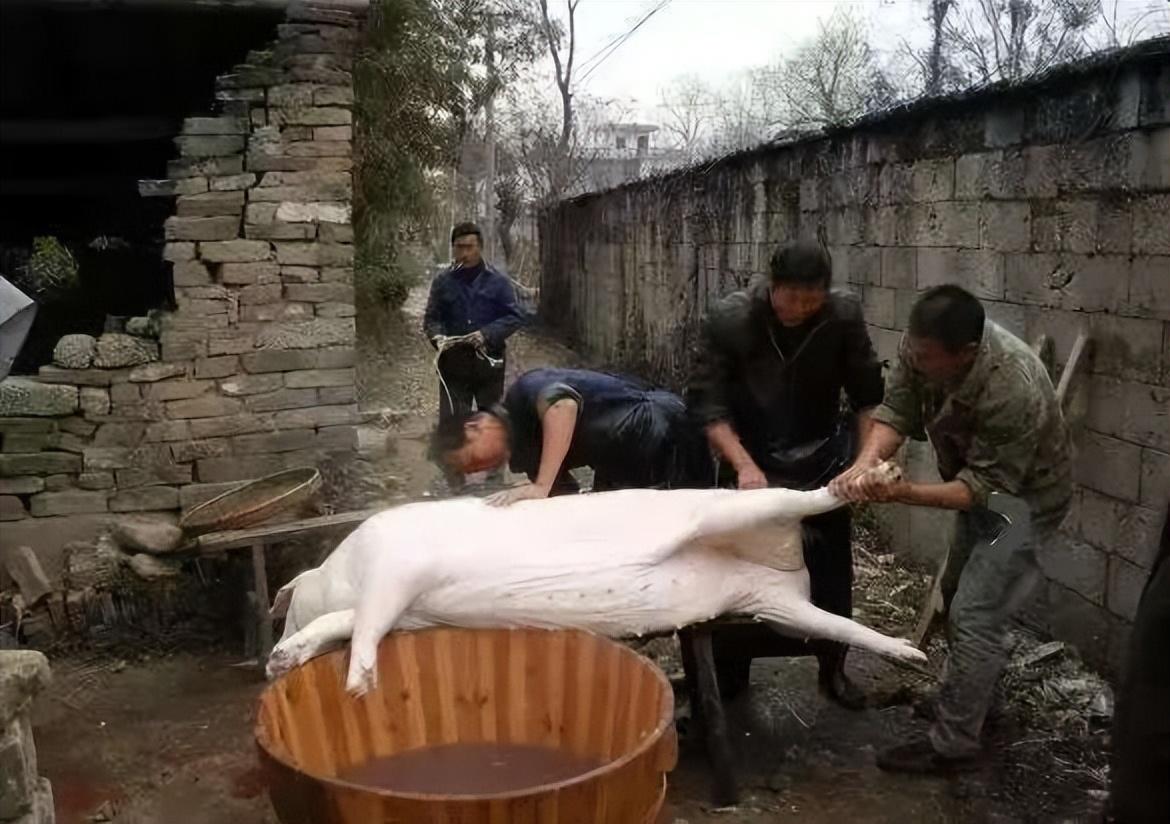天剛矇矇亮,東家就把村裏的殺豬師傅請來了,都是十里八鄉手藝老道的人,手裏攥着磨得鋥亮的尖刀,腰間繫着粗布圍裙,步子邁得穩當。院裏早支起了寬寬的木案,燒好了一大鍋滾沸的熱水,幾個身強力壯的叔伯兄弟也到了,擼着袖子等着搭手。豬是自家養了一年的肥豬,養得膘肥體壯,被幾個人合力從圈裏趕出來時,哼哧着晃着身子,院裏的孩子追着跑,大人笑着喊,雞鳴狗吠混在一起,滿院都是人間煙火的熱鬧。
