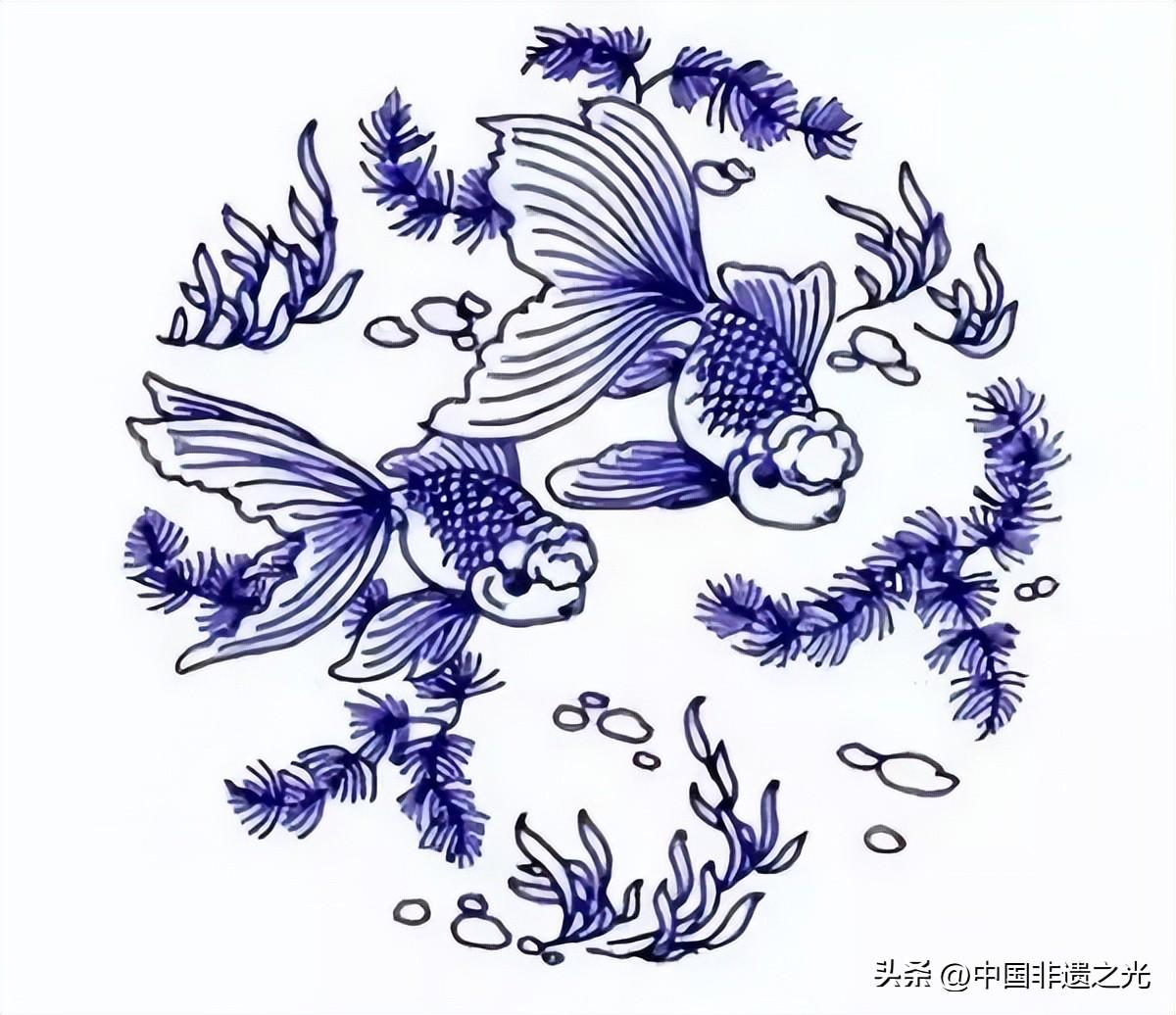 圖案爲天上有一條雲龍,水中有一鯉魚。或一龍首鯉身;或一鯉魚翻躍龍門之上。