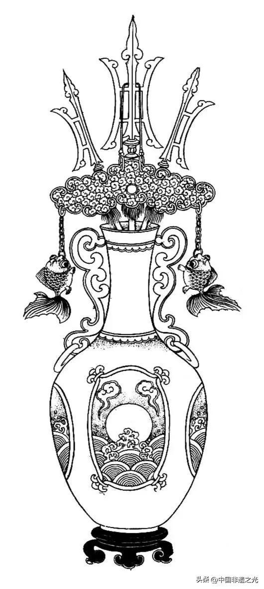 中國吉祥紋飾源遠流長,通常都是以吉祥語、民間諺語、神話故事爲題材,用借喻、比擬、雙關、象徵等表現手法,將圖案和吉祥語完美結合,凝結着人們的美好願望。