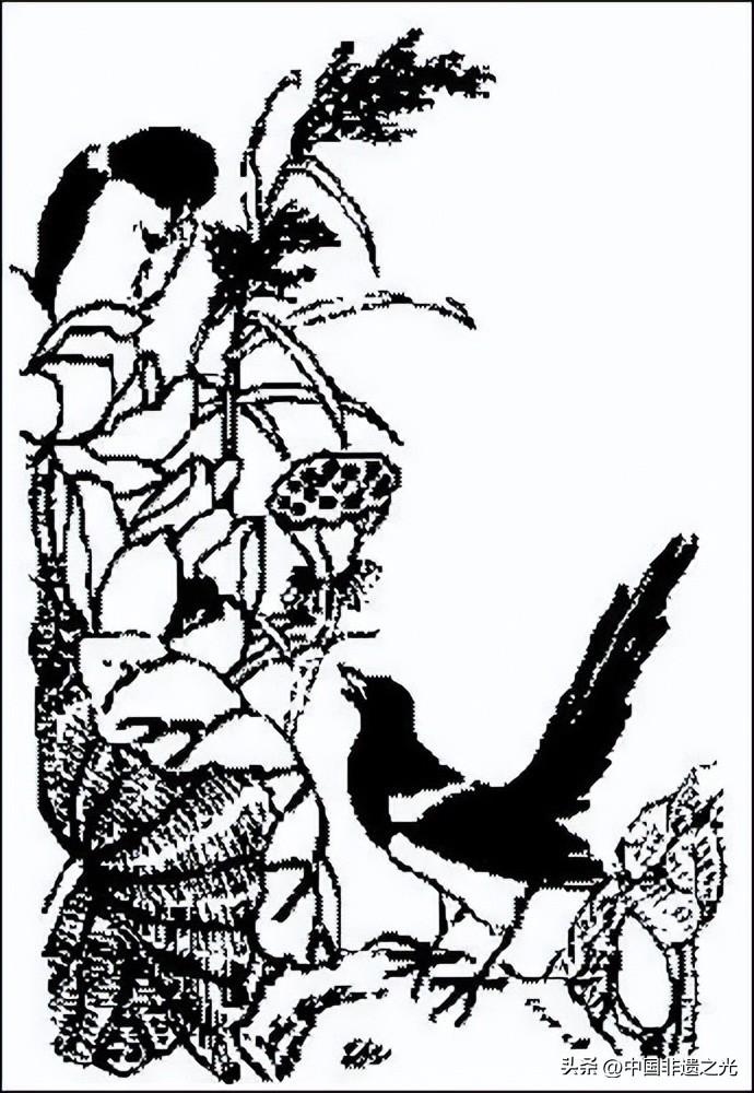 在民間傳說中喜鵲是能報喜的鳥類,這裏利用“蓮”、“連”同音,蘆葦棵棵相連,“棵”與“科”同音,組成了“喜得連科”的吉祥紋。“喜得連科”寓意學子連連取得應試好成績。