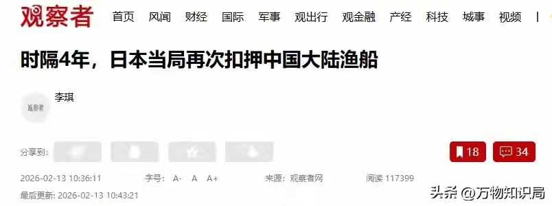 2026年2月12日至13日,日本在長崎縣五島市西南約170公里中日東海爭議海域,以“拒絕停船檢查”爲由出動多艘執法船扣押中國漁船、逮捕船長,不到24小時又以提交擔保書快速釋放,上演一場“快扣快放”的外交短劇。這一事件並非單純漁業執法,而是日本在東海主權爭議、國內政治與對華戰略平衡下的精準試探、可控挑釁、快速止損,集中折射當前中日海洋博弈的底層邏輯與風險邊界。