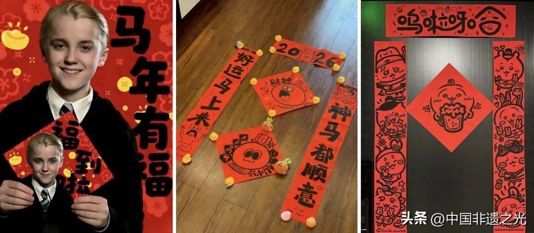 對於新一代“年味主理人”來說,年貨已經從過去的實用補給逐步轉變爲情緒價值和自我表達的情感載體。年初,“哭哭馬”玩偶意外爆火,成爲了年貨新寵;電影《哈利·波特》中的角色馬爾福成爲“中國馬年吉祥物”,衍生出了“馬爾福”春聯、“馬爾福”冰箱貼等新春裝飾品;春聯也不再墨守成規,在“年味主理人”的奇思妙想下變身成爲 “快樂彈幕”.......這些帶着笑點和情緒的新年文創產品,用梗、用設計、用情感做串聯,讓年輕人從“貼春聯”轉向“玩春聯”,也讓春節從“家庭的團圓場”拓展爲“自我的表達場”。
