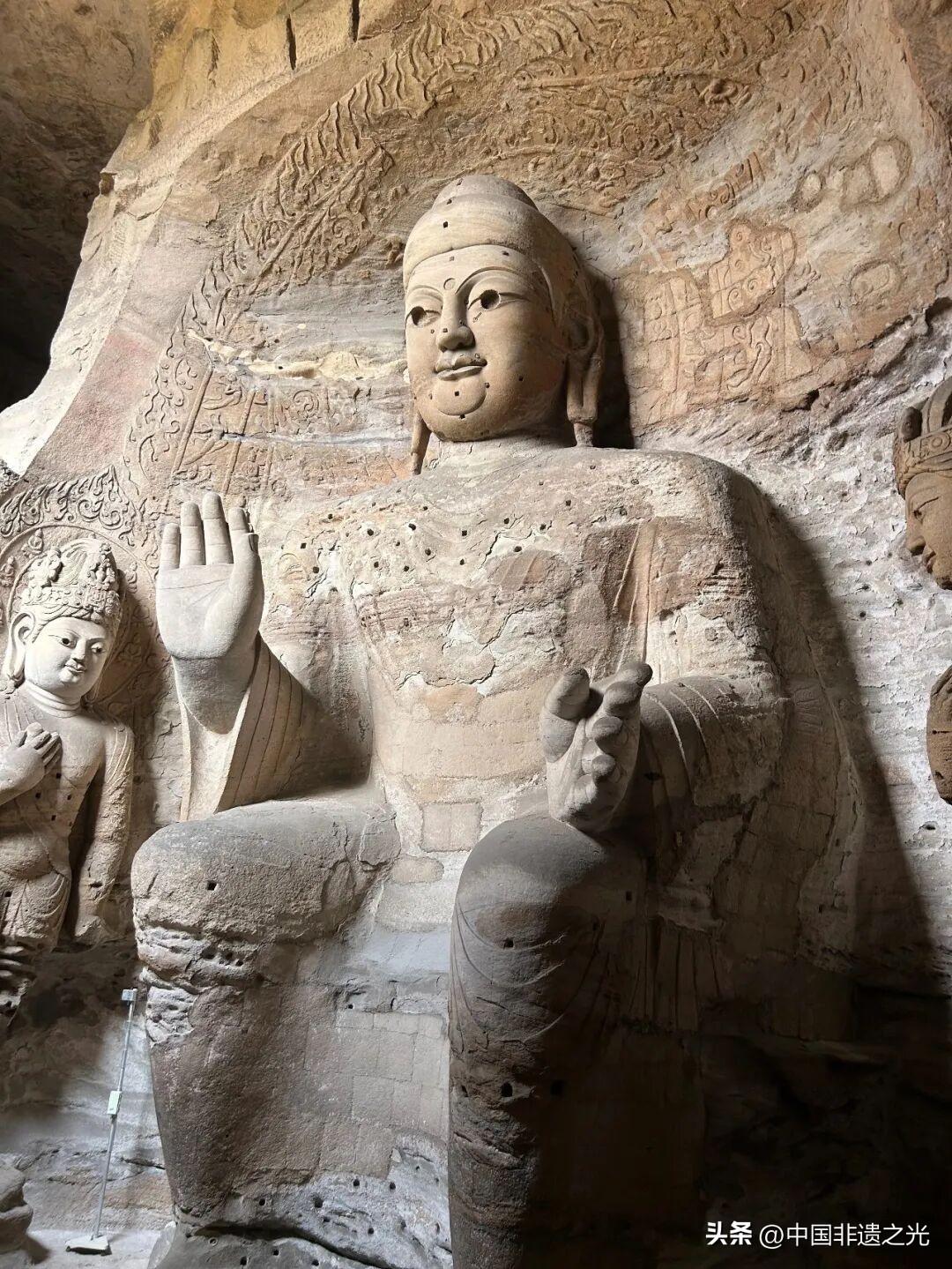 此時,雲岡石窟正處早期開鑿階段,曇曜五窟(第16-20窟)的佛像雕刻體現北魏前期佛教藝術風格。