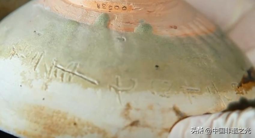 這隻長沙窯瓷碗是“黑石號”沉船中最重要的斷代證據。碗底清晰地用褐彩書寫着:“寶曆二年七月十六日”。
