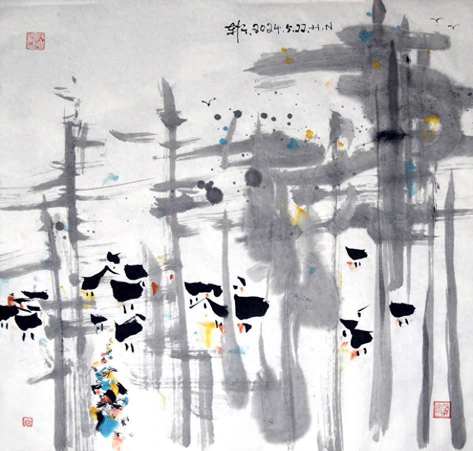 我們把人氣旺盛可以比喻成熱鬧非凡,人潮湧動熙熙攘攘,一種情緒化的表達油然而生躍然紙上。以局部的動態帶動整個畫面或是點燃整個畫面的熱情,從而顯現出四兩撥千斤的能量來,需要藝術表現裏的巧字,也可以說是技巧吧,因爲有一定的技術性。而實際上,是審美觀的需要而處理技巧,並非是繪畫技法處理技巧,這兩者有着本質上的不同。