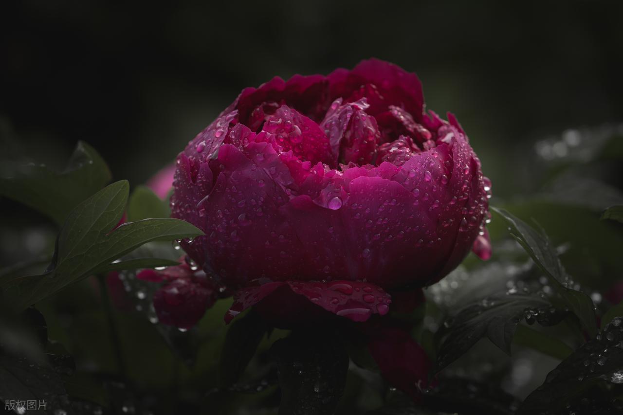有一株墨色的牡丹,紫得發黑,立在園子中央。旁邊豎着牌子,寫着“冠世墨玉”四個字。這名字起得好——可不是麼,那花瓣厚實實的,油亮亮的,真像上好的墨玉雕出來的。它不像別的花那樣招搖,只是靜靜地立着,卻自有一種攝人的氣度。我站在它面前,忽然有些明白爲什麼牡丹被稱爲“國色天香”了。這種美,不是小家碧玉的美,是母儀天下的美,端莊裏透着華貴,華貴裏又帶着些不可親近的意味。