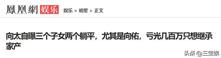 鳳凰網娛樂——向太自曝三個子女兩個躺平,尤其是向佑,虧光幾百萬只想繼承家產