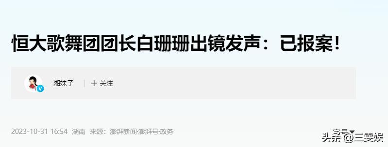 澎湃網——恆大歌舞團團長白珊珊出鏡發聲:已報案!