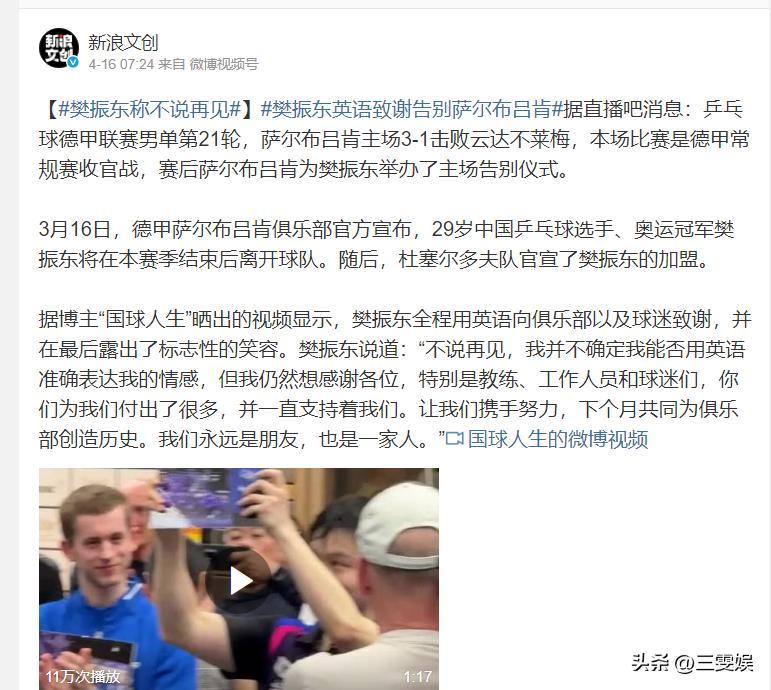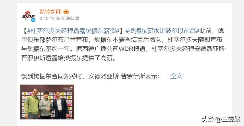 新浪新聞——【#杜塞爾多夫經理透露樊振東薪資#】