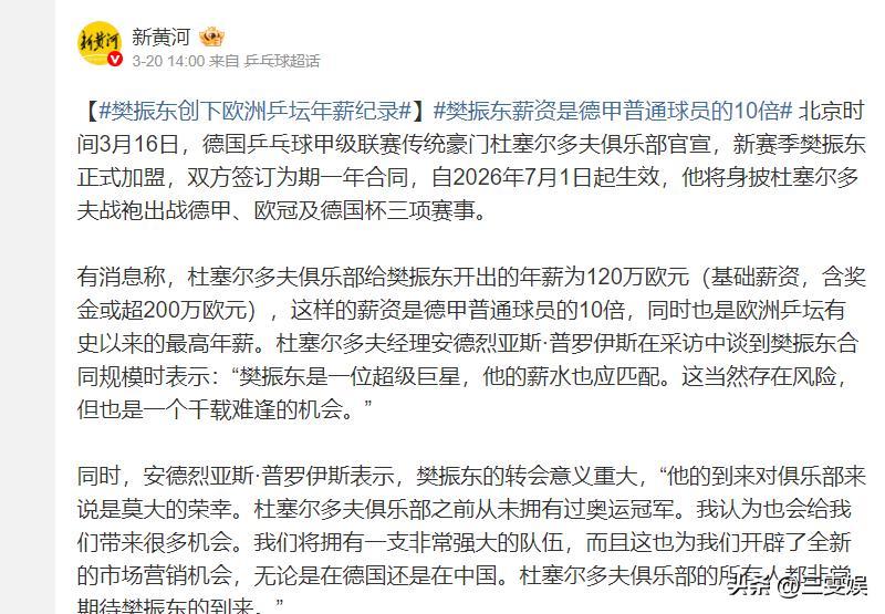 新黃河——【#樊振東創下歐洲乒壇年薪紀錄#】