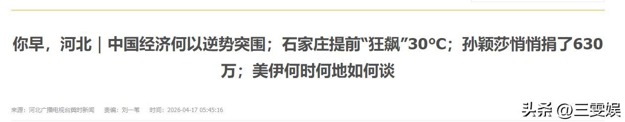 河北廣播電視臺冀時新聞——孫穎莎悄悄捐了630萬