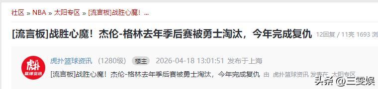 虎撲籃球資訊——戰勝心魔!杰倫-格林去年季後賽被勇士淘汰,今年完成復仇