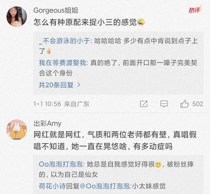 網友紛紛在評論區留言:怎麼有種原配來捉小三的感覺,網紅就是網紅,氣質和兩位老師沒法比,真唱假唱不知道,她一直在晃悠啥,有多動症嗎?
