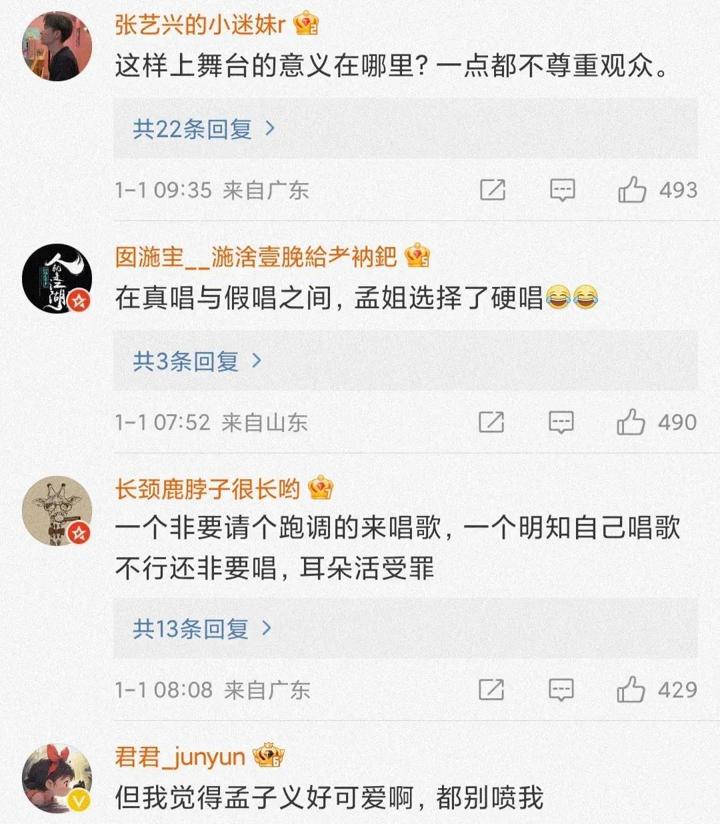 網友紛紛在評論區留言:能把歌唱成這個調調,一定程度上也是人才,周華健大哥心裏苦啊,想拉都拉不回來,這麼好聽的一首歌,唱成這樣,在真唱和假唱之間,孟子義選擇了硬唱,五音不全,就不要上臺表演,這樣一點也不尊重觀衆,聽歌是爲了享受,不是讓耳朵遭罪,這姐以後別出來唱歌了!