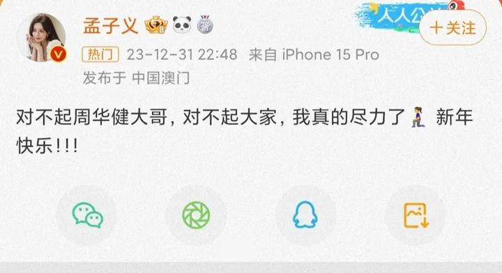 孟子義也在社交平臺發文回應此事,表示自己已經盡力了,對不起周華健和觀衆。