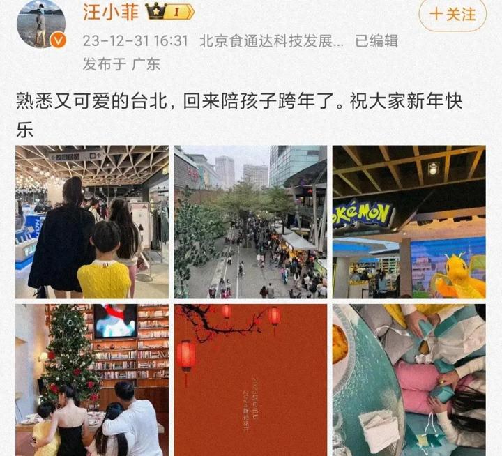 12月31日,汪小菲在社交平臺發文,稱:“熟悉又可愛的臺北,回來陪孩子跨年了”,並曬出一組照片!