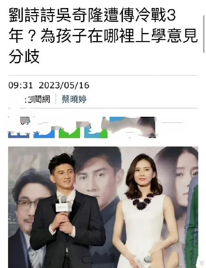 另外,今年5月份,臺媒爆料劉詩詩吳奇隆已經冷戰三年,原因是兩人爲了孩子上學地點的選擇問題上產生分歧。