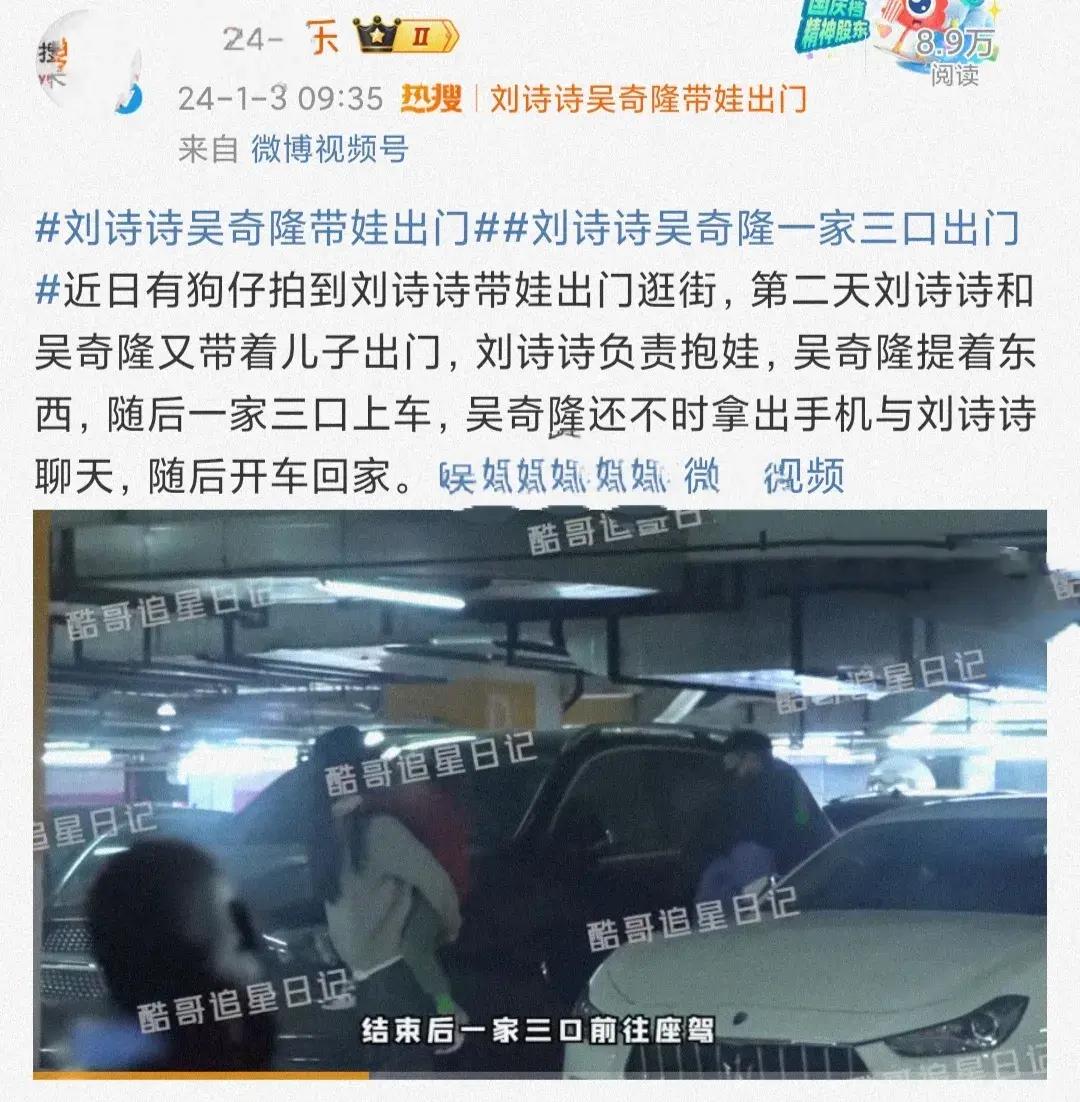 1月3日,狗仔在社交平臺曬出一段視頻,爆料稱近日拍到吳奇隆劉詩詩帶着兒子出門逛街,一家三口同框,畫面十分溫馨。