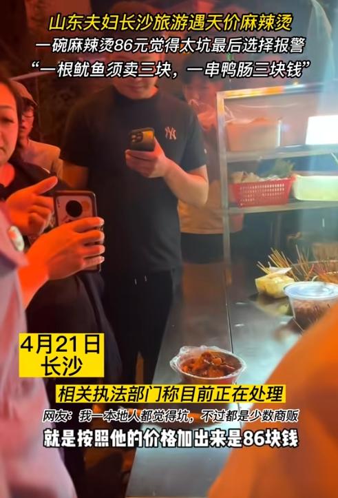 2023年4月,山東一對夫婦在長沙買了一碗麻辣燙,花費了86元,其中一根魷魚須3元,一串鴨腸3元。