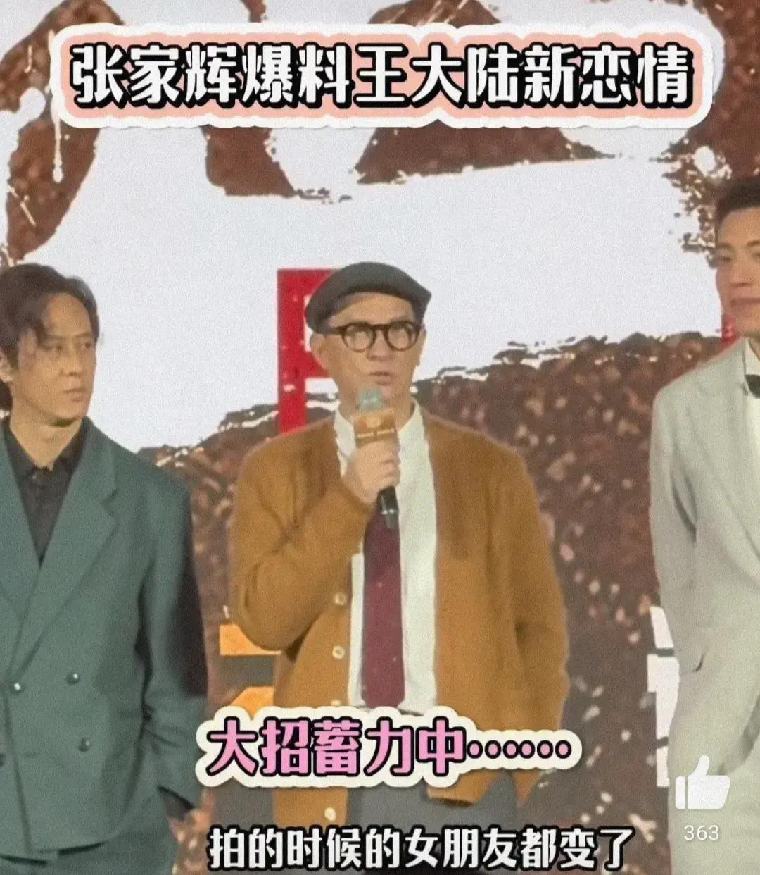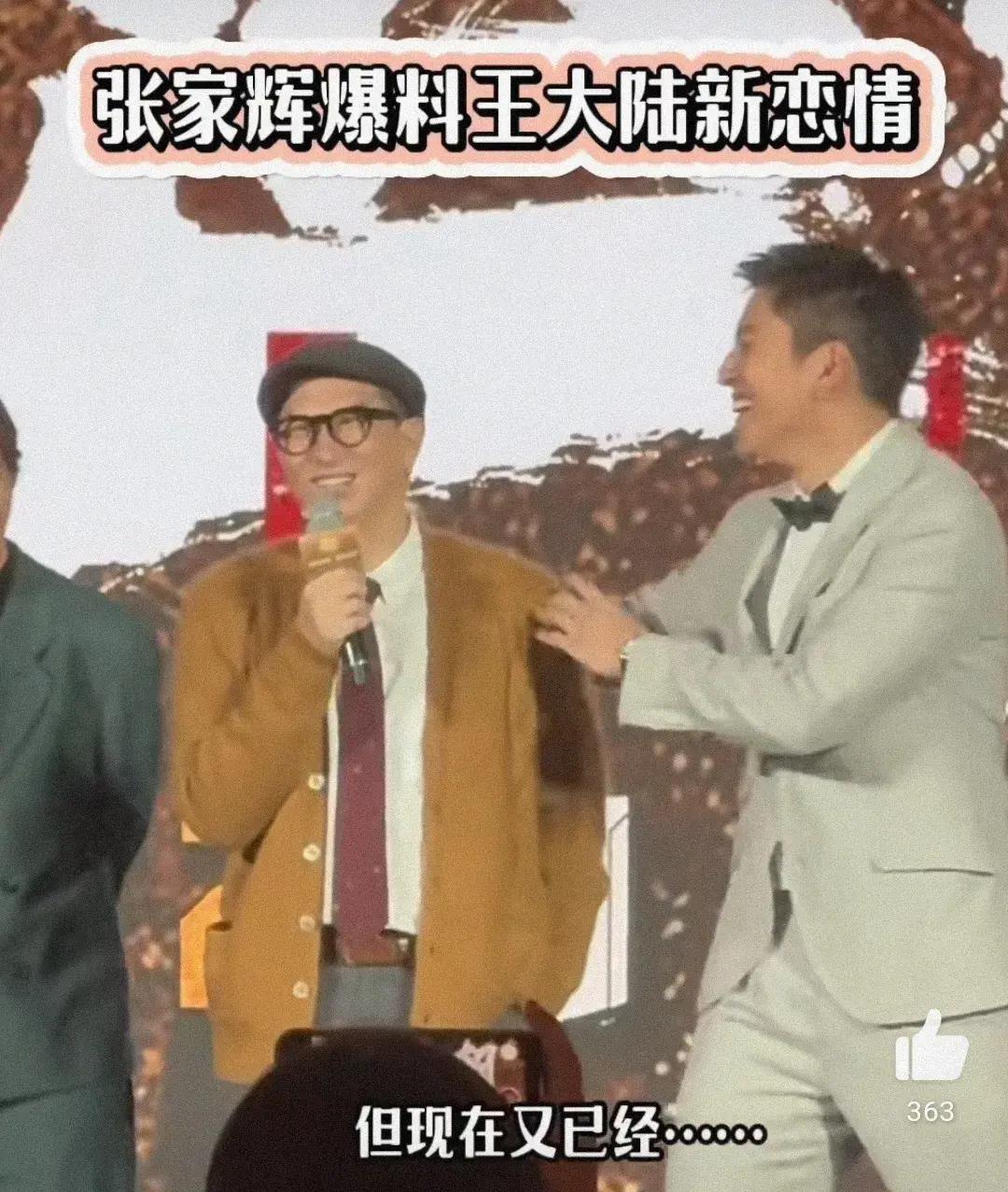 新片記者會上,張家輝突然爆料,稱王大陸拍戲時女朋友都變了,那個時候還說仍然愛她……,沒想到,現在都已經……,說話間,欲言又止,貌似有所顧慮。