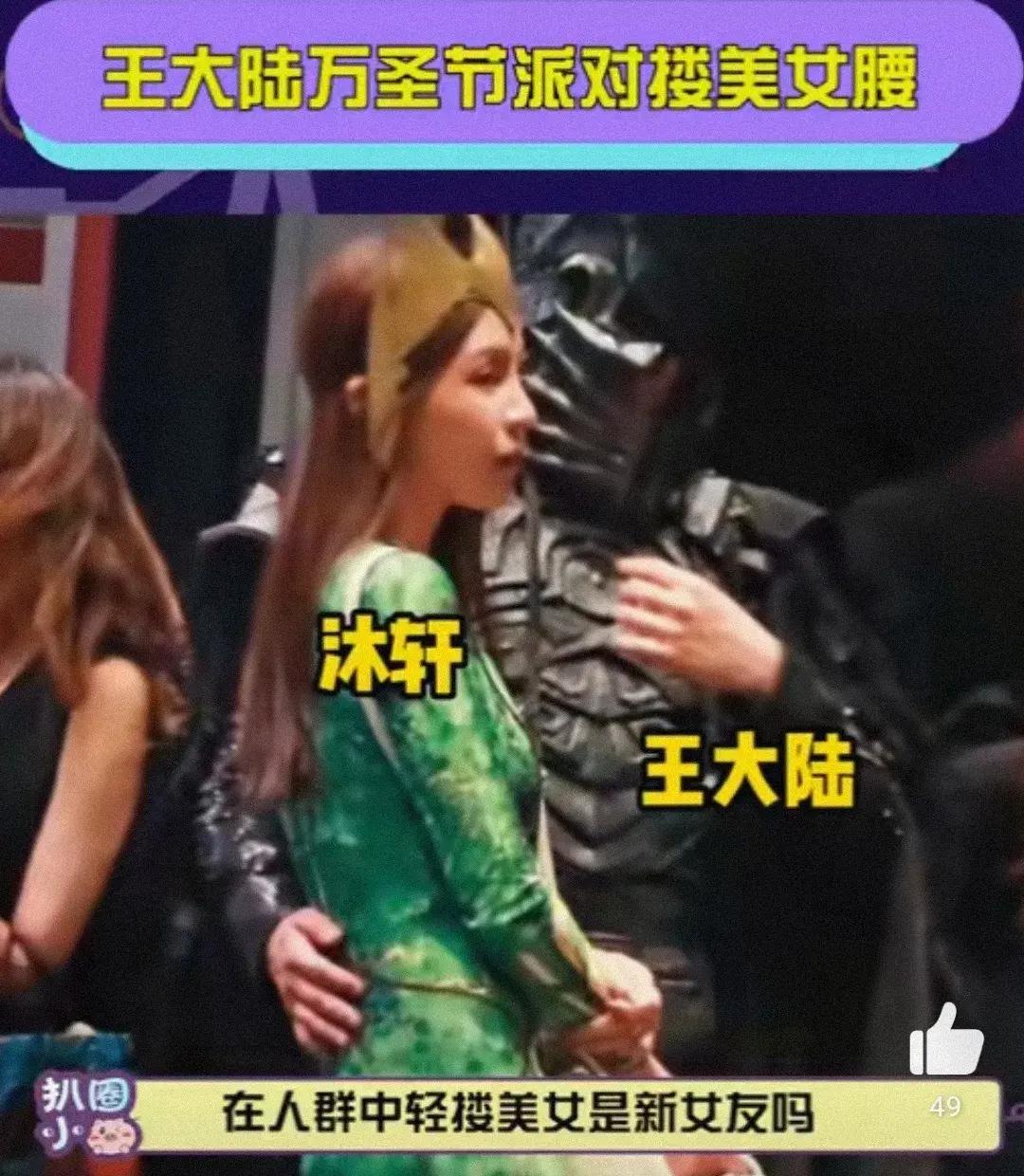 據臺媒爆料女孩是女主播播沐軒,多次拍到王大陸與女孩同遊,在聚會上,還大方摟着新女友的腰。