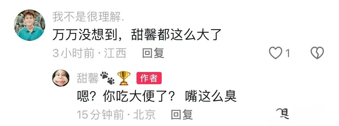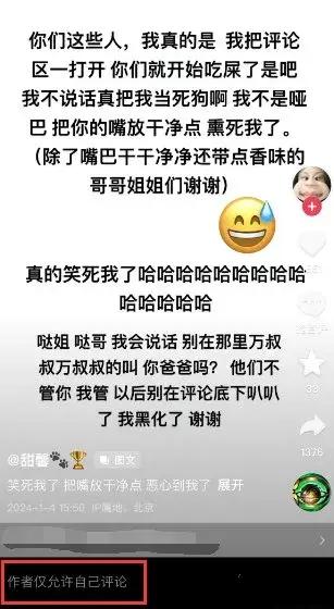1月4日,甜馨特意在社交平臺發文,稱:“你們這些人,我真的……,別在那裏萬叔叔萬叔叔的叫,你爸爸嗎?以後別在評論裏叭叭了,我黑化了”,並且直接關閉了評論區。