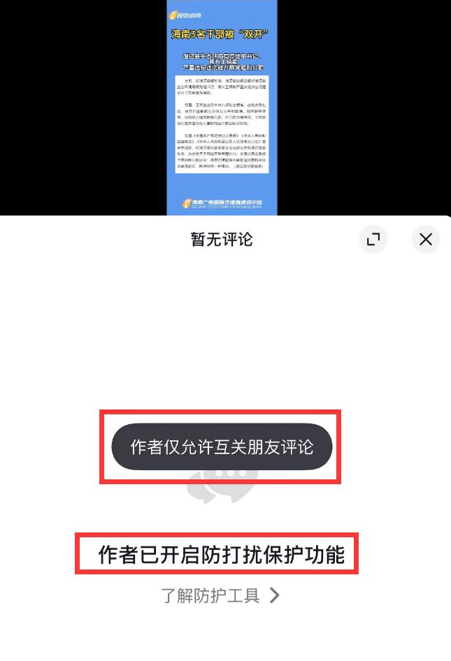 見大家越罵越起勁,沒有任何消停的意思,到最後,海南廣播電視總檯乾脆開啓了防打擾保護功能,只允許互關朋友評論,也就是說海南廣播電視總檯被罵到關閉評論功能了。