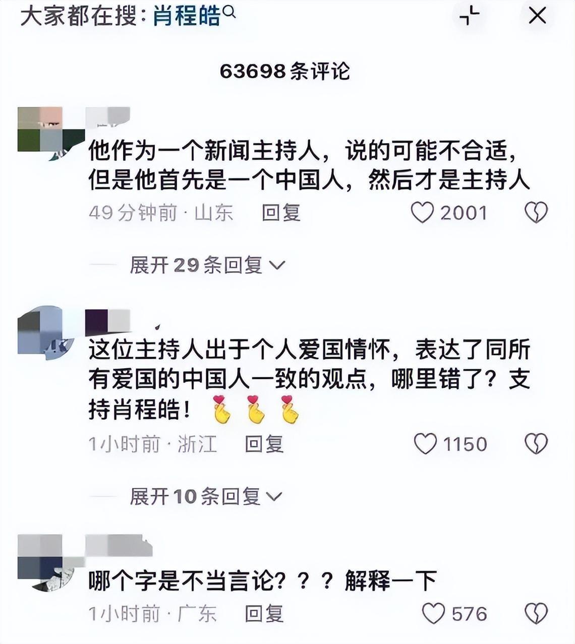 也因此,網友們怒了,在他們看來,肖程皓的說法是正確的,是愛國的表現。