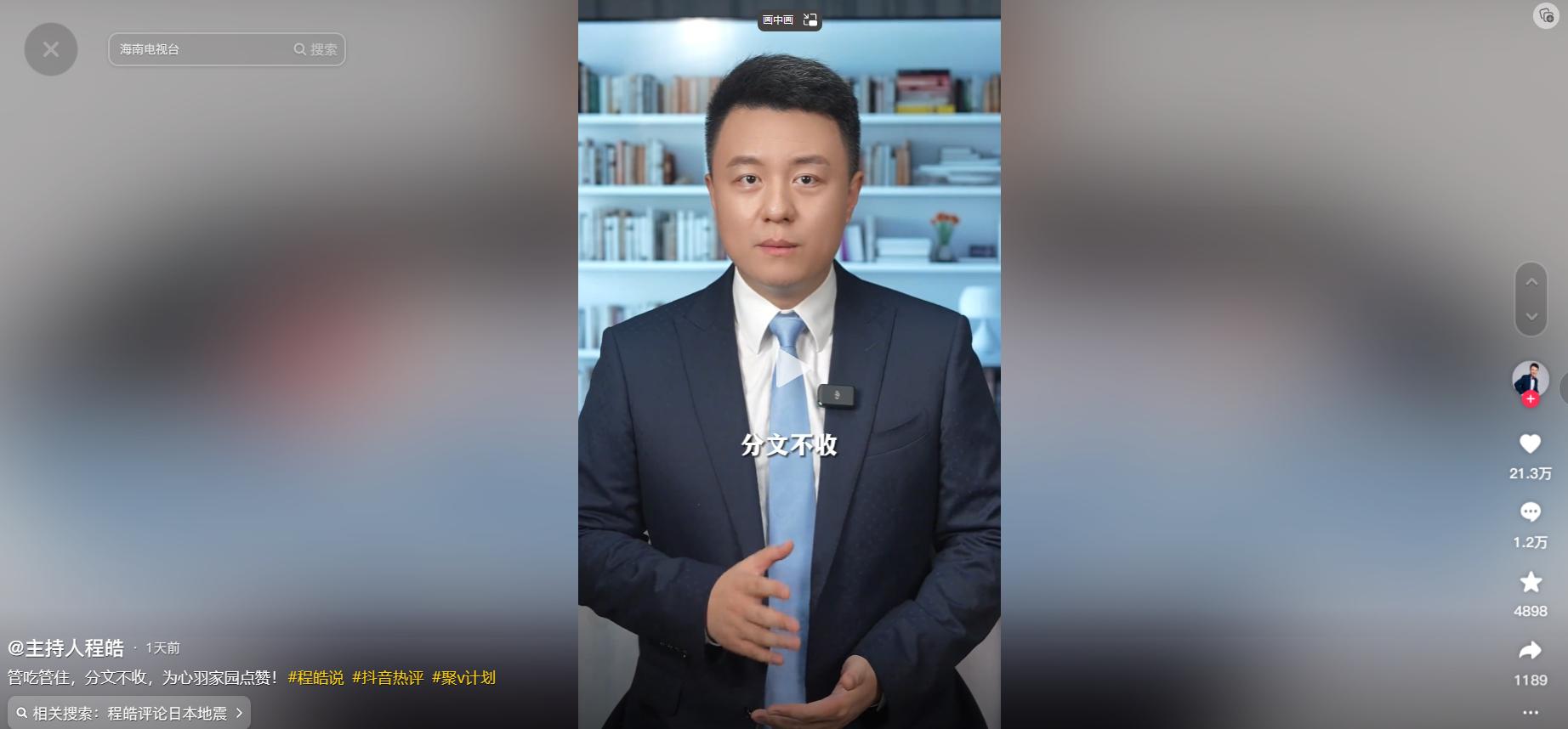 日本地震後,主持人程皓被停職,海南電視臺被罵,黃安發聲惹爭議