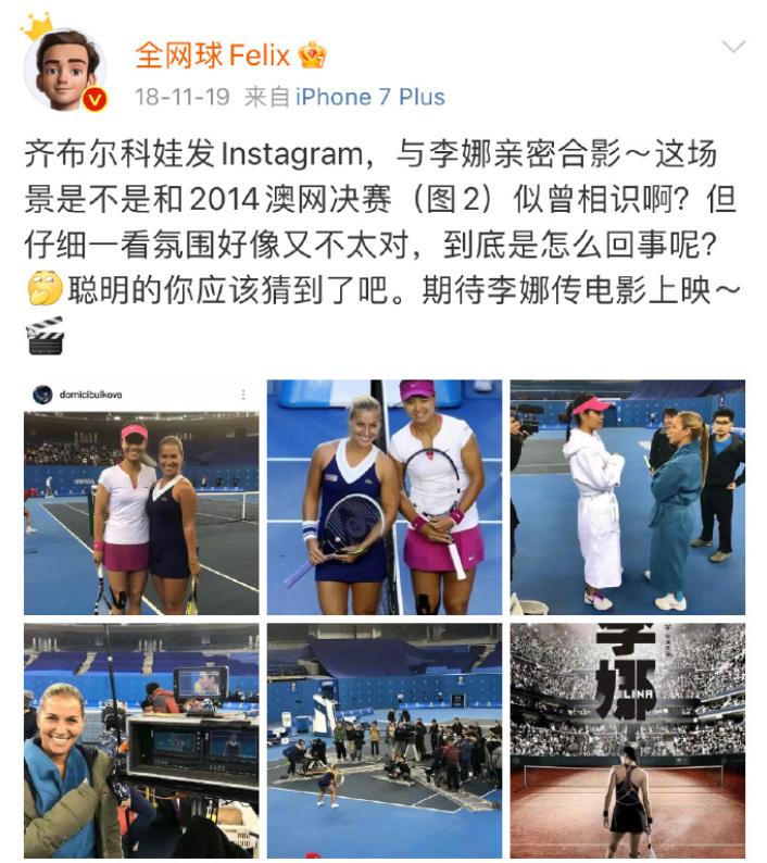 據說,李娜本人也會在電影裏客串一兩個鏡頭,估計就是和多米尼卡·齊布爾科娃對戰的時候。