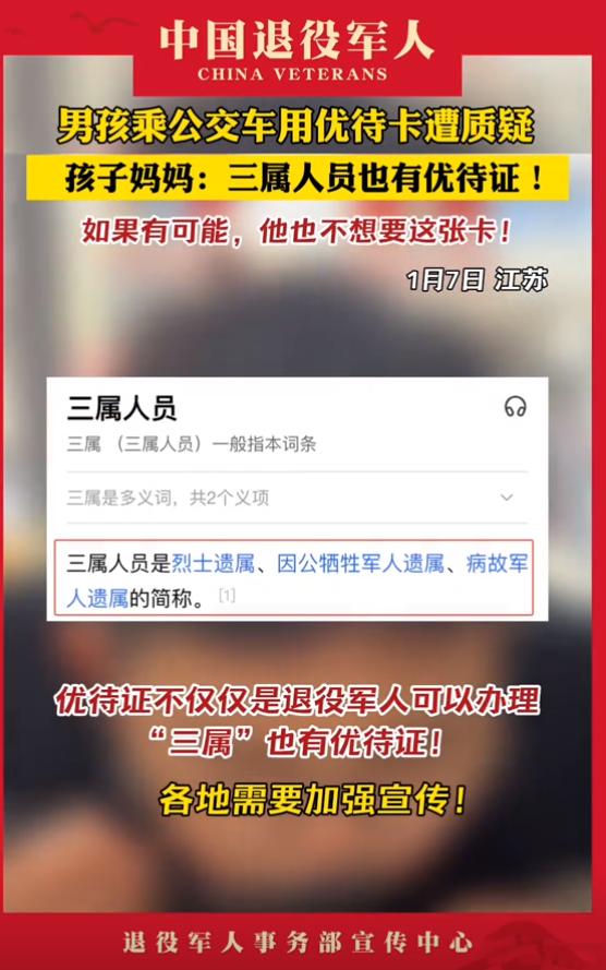 而男孩能持有優待證,是因爲他屬於“三屬人員”。至於具體是什麼情況,網友們並不瞭解。