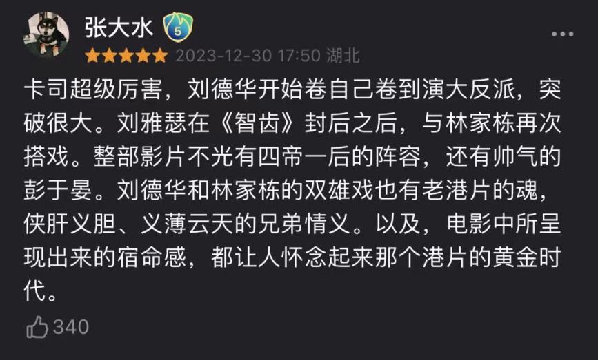 此時此刻,劉德華或許需要我們的支持和幫助。2024年第一份感動來自劉德華和兢兢業業的香港電影人,這些主創拍出來這樣一部具有誠意的作品,也值得我們走到影院去支持。