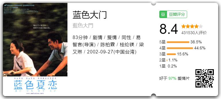 豆瓣上,43萬多人打出了8.4的高分,這擱現在的華語市場,也絕對稱得上青春愛情片中的佼佼者。